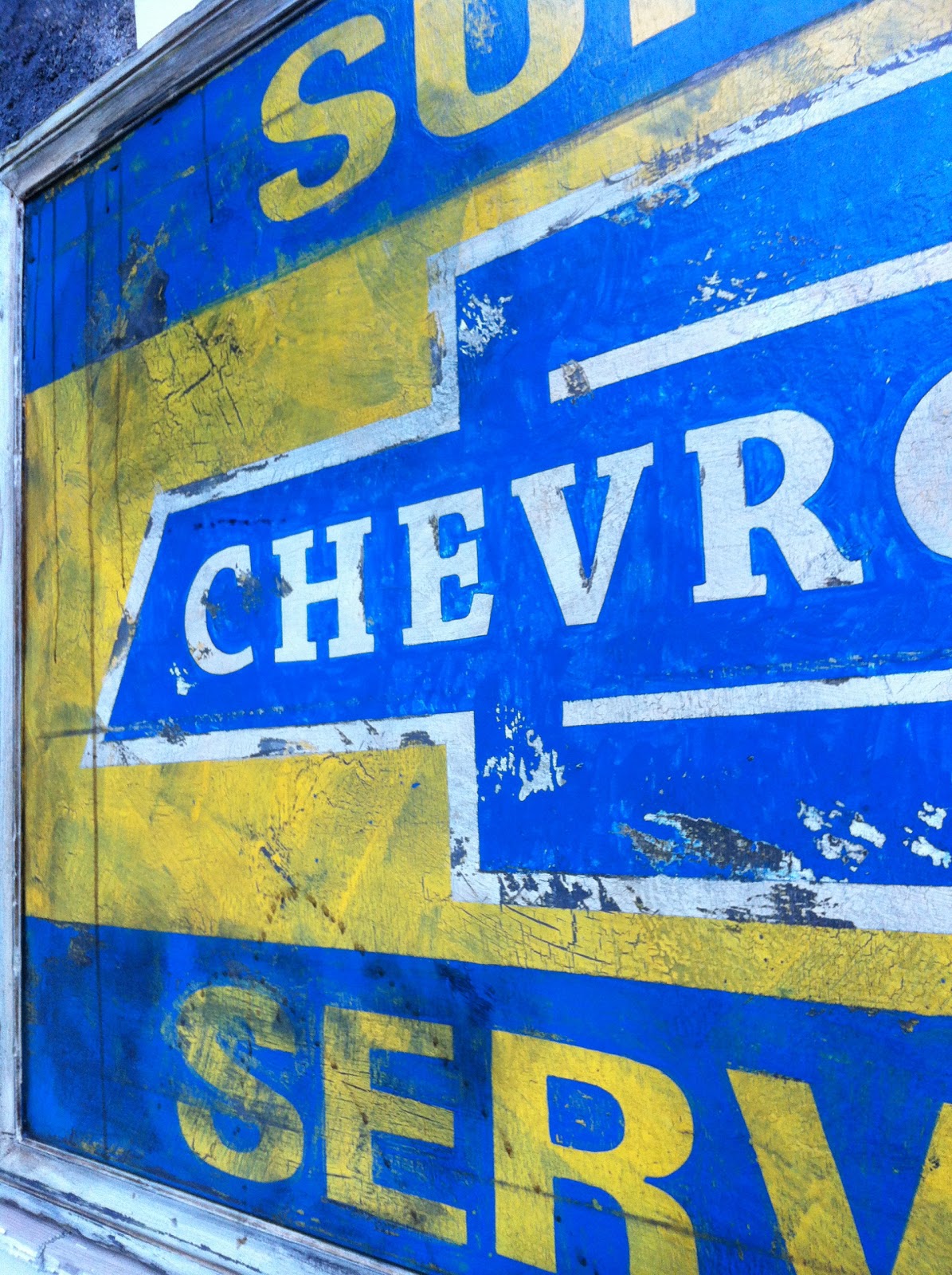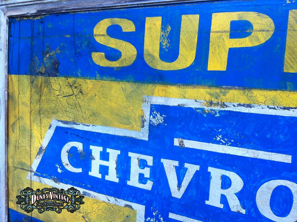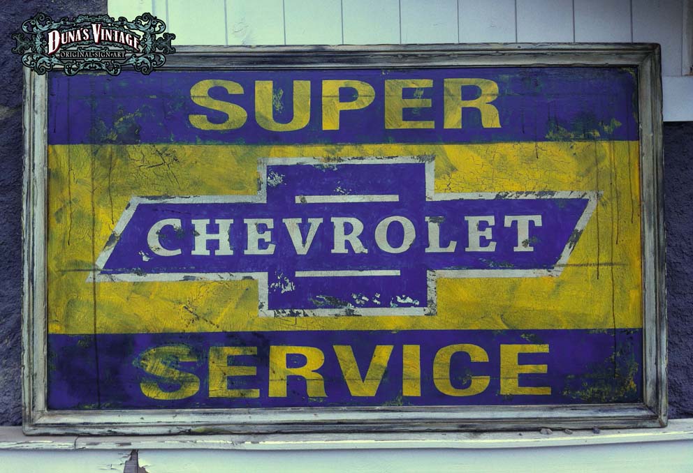Cartel de estación de servicio CHEVROLET SUPER SERVICE, Tamaño 1120x740mm, estos carteles son típicos de los talleres de coches y gasolineras de los años 50, Duna´s Vintage. Precio 400€.