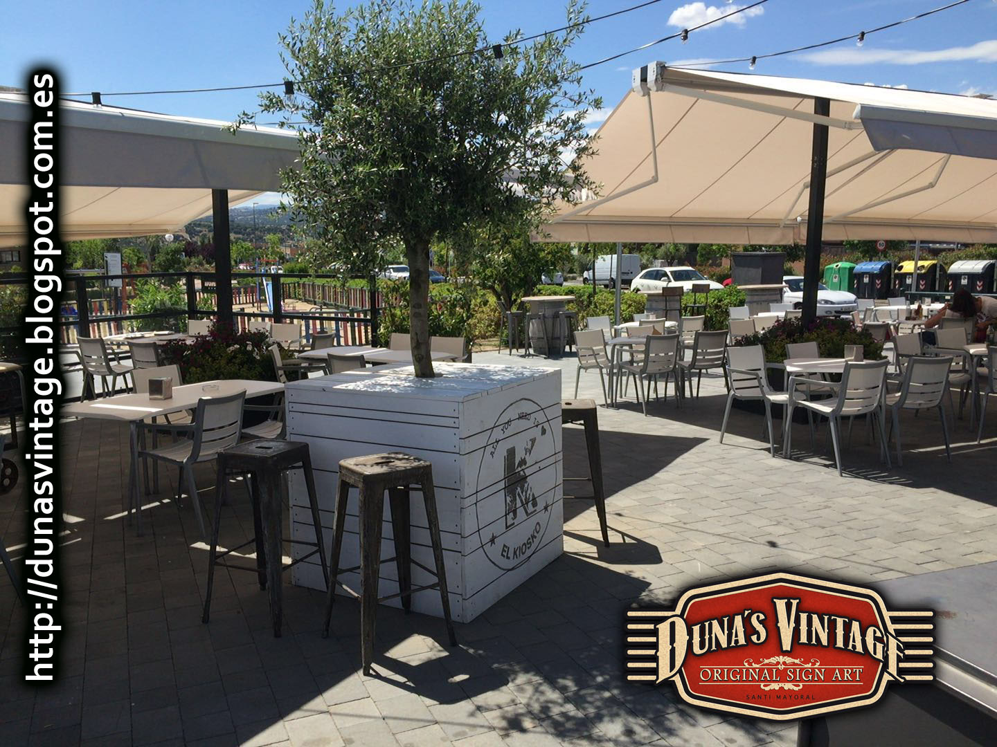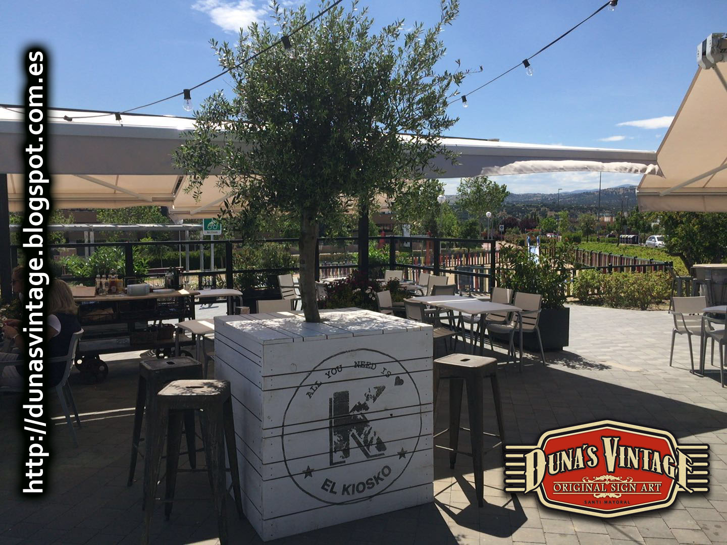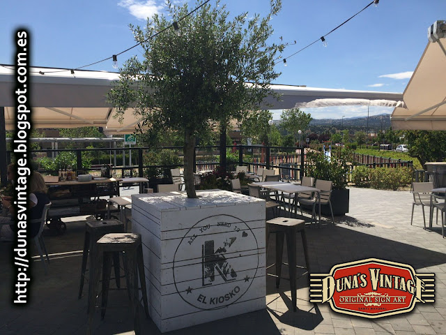 El cliente del Kiosko me envía unas fotos de las jardineras montadas en una de sus terrazas, han quedado muy autenticas y sirve para tapar la maceta y de barra para dejar las bebidas y las tapas, Duna´s Vintage.