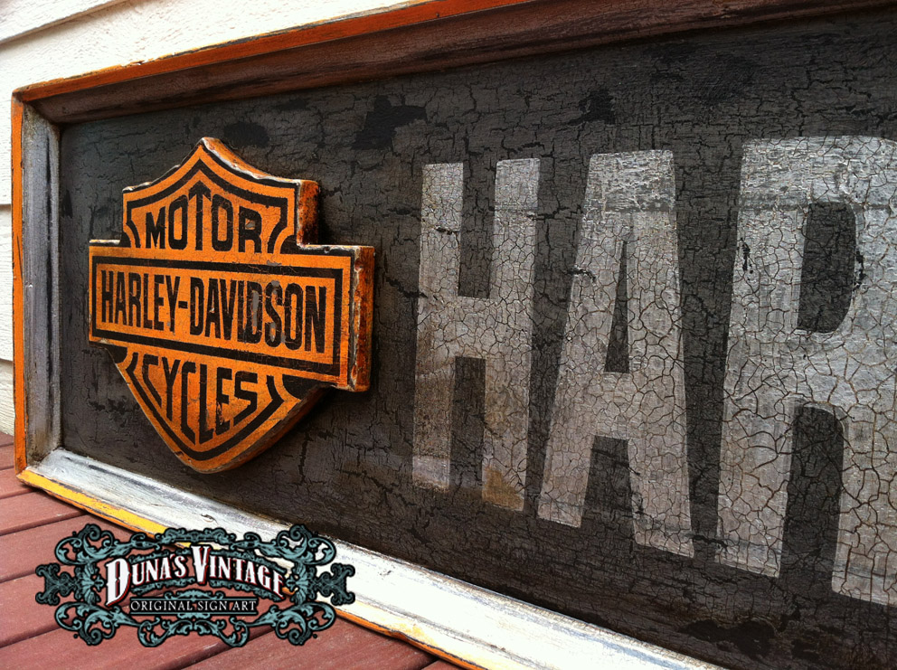 Cartel Harley Davidson, típico rotulo de estación de servicio tamaño 2500x400mm, Duna´s Vintage.