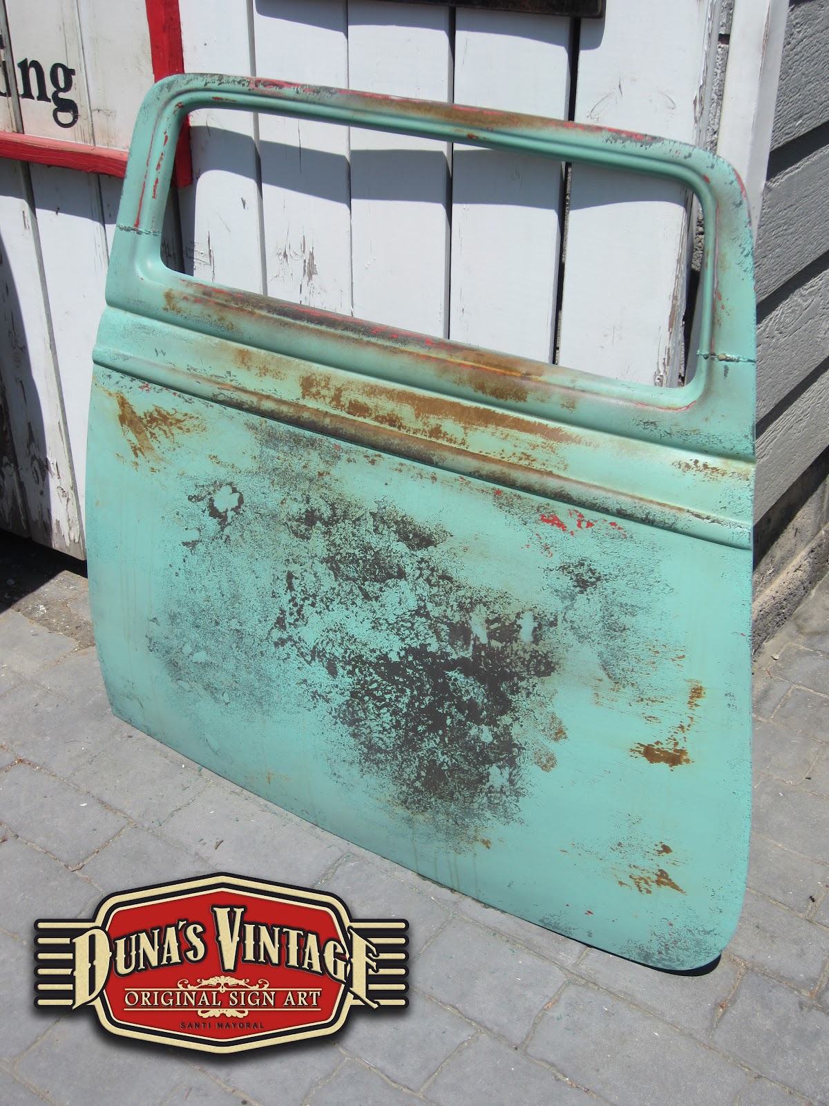 una puerta de un Ford del 33, la base es una puerta fabricada en fibra de vidrio