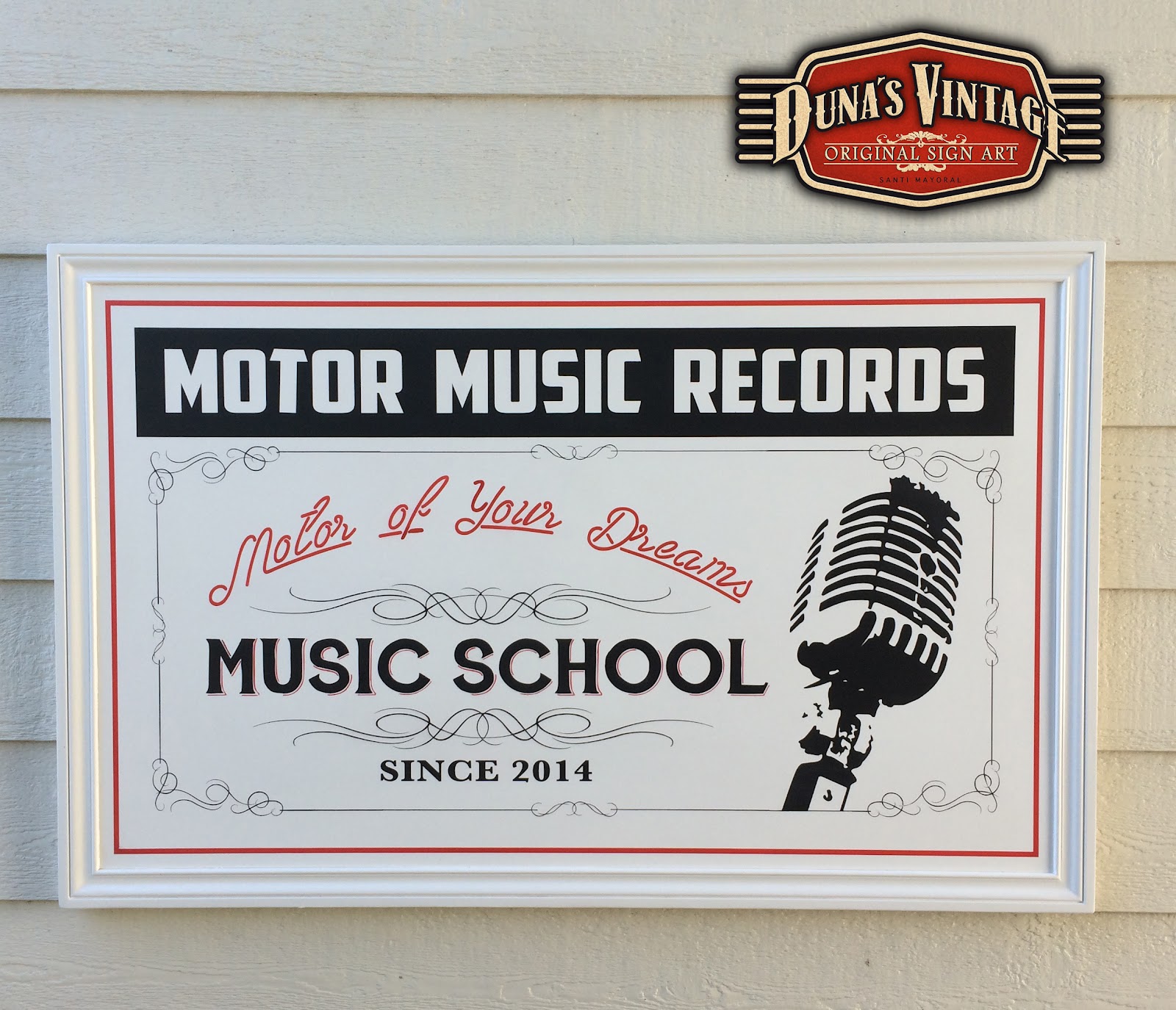 Cartel y pizarra a dos caras para Motor Music Récords, el
