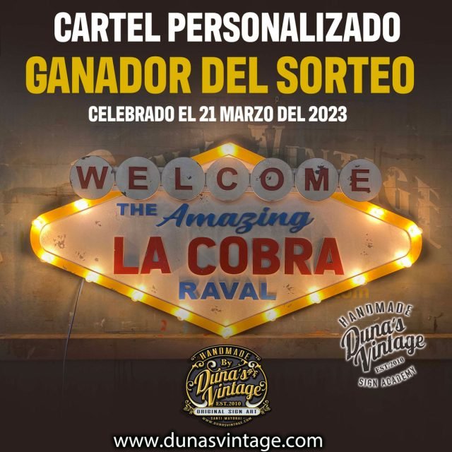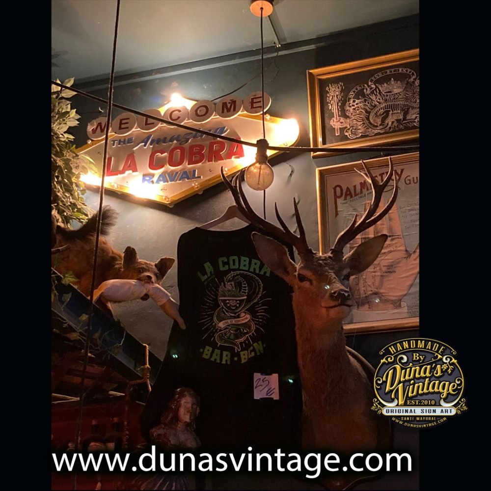 Como ya sabéis hice un sorteo por llegar a 10K de un cartel de Welcome las Vegas personalizado, el ganador fue La Cobra una Coctelería del Raval en Barcelona con una decoración muy autentica que el cartel ha quedado muy autentico, os adjunto fotos del cartel terminado y ya colgado en el local.