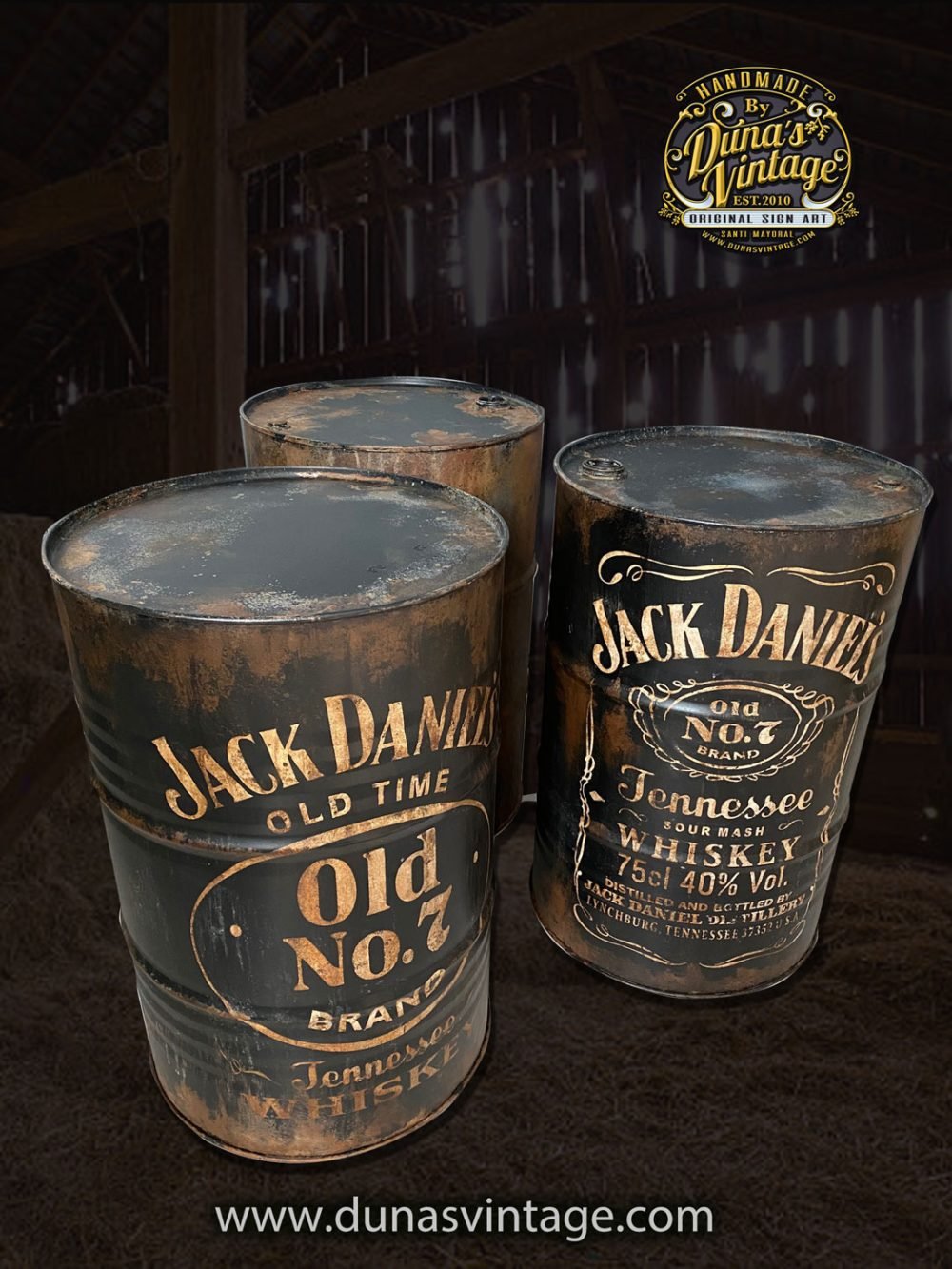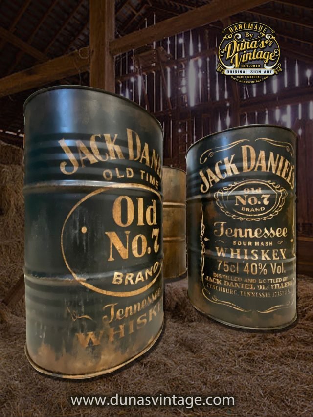 En Duna’s Vintage tenemos estos increíbles bidones de 200L personalizados de Jack Daniel’s, perfectos para quienes aman el estilo retro industrial americano.