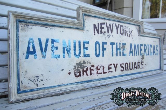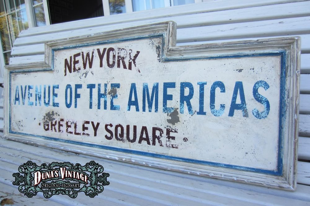 Cartel de New York «AVENUE OF THE AMERICAS» tamaño 350x1000mm, este cartel esta tratado con el efecto Retro que Duna´s Vintage emplea en sus carteles