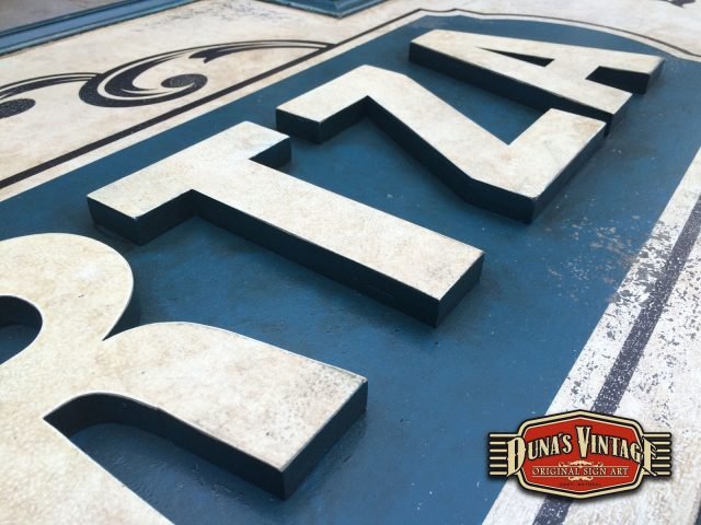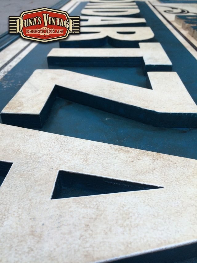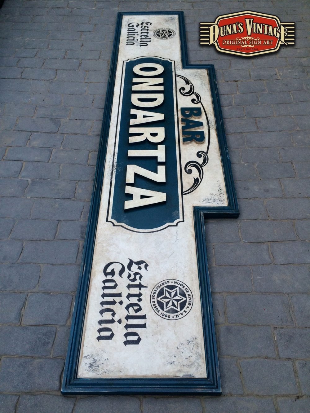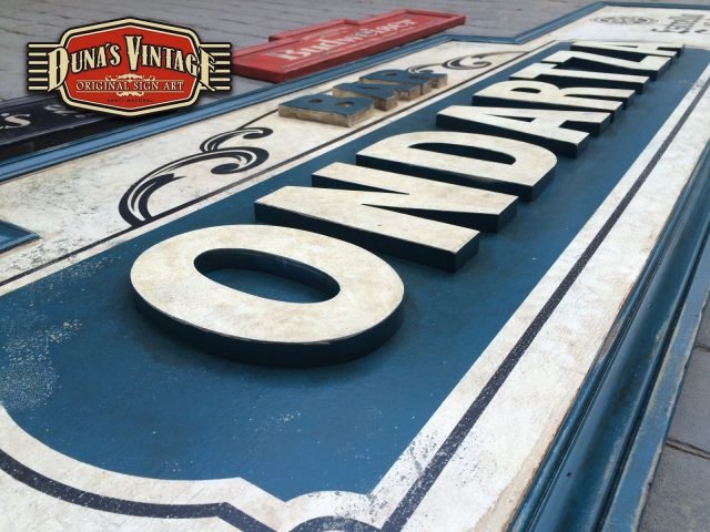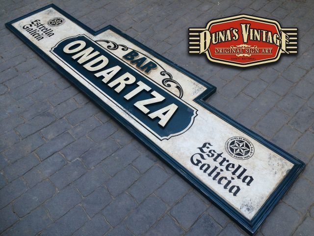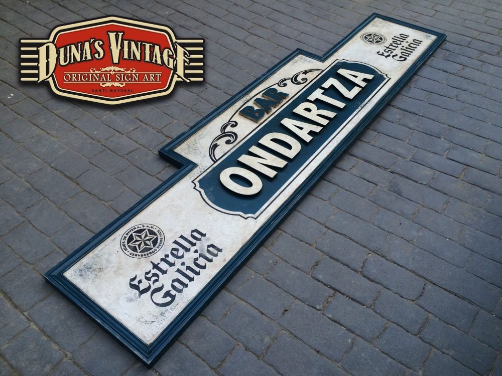 Carteles para el BAR ONDARTZA de San Sebastián, el cartel Bar Ondartza con letras en relieve y con el efecto que Duna´s Vintage emplea en sus carteles, tamaño del cartel es de 2850x730mm.