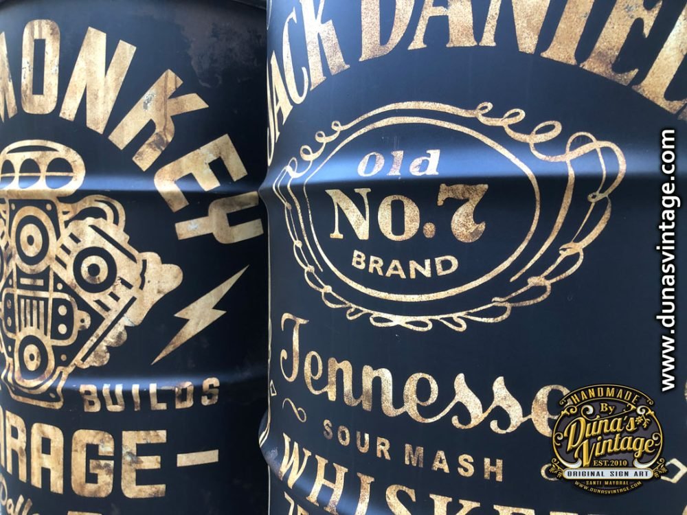 Bidones metálicos de 200 litros en este caso personalizado uno de Jack Daniel´s y otro de Gas Monkey con efecto Oxidado envejecido.