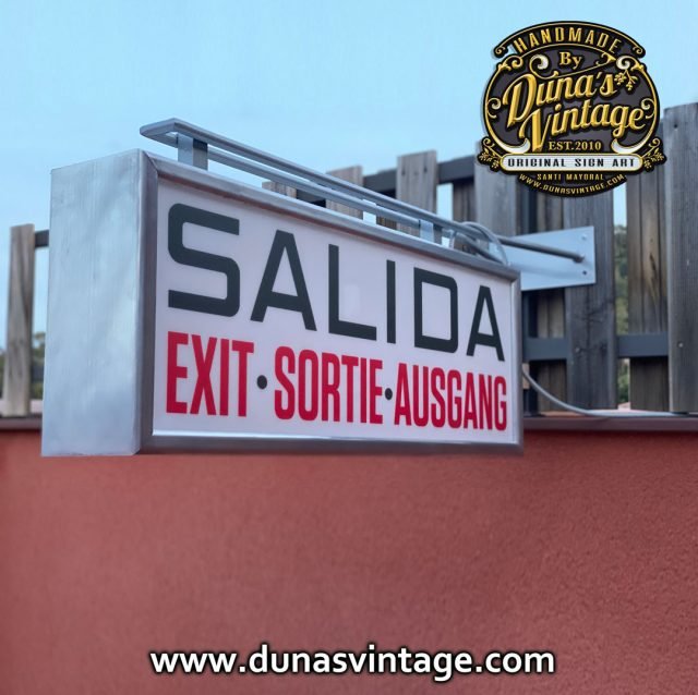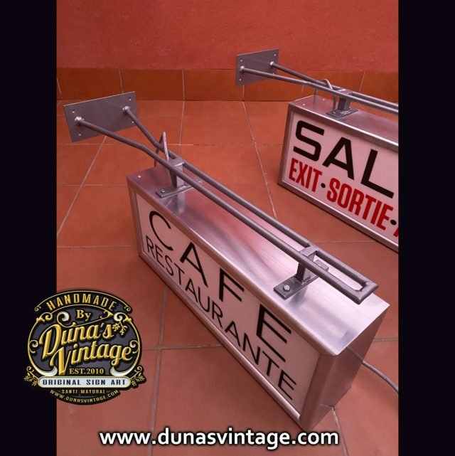 Siguiendo la línea de los carteles para la Warner Music Station. Estas cajas de luz es una réplica lo más exacta de lo que fue en su día la estación Norte de Madrid, Príncipe Pio en ella se albergará la sede de un gran “hub” creativo-musical de Warner Music, la idea ha sido replicar todos los carteles que se encontraban antiguamente en esta emblemática estación de Madrid, se ha buscado hasta el último detalle para que quede lo más auténtico posible, Son dos cajas de luz tamaño 60x25cm (Café Restaurante) y la otra de 80x30cm (salida) pronto pasare las fotos colgadas en la estación.