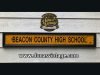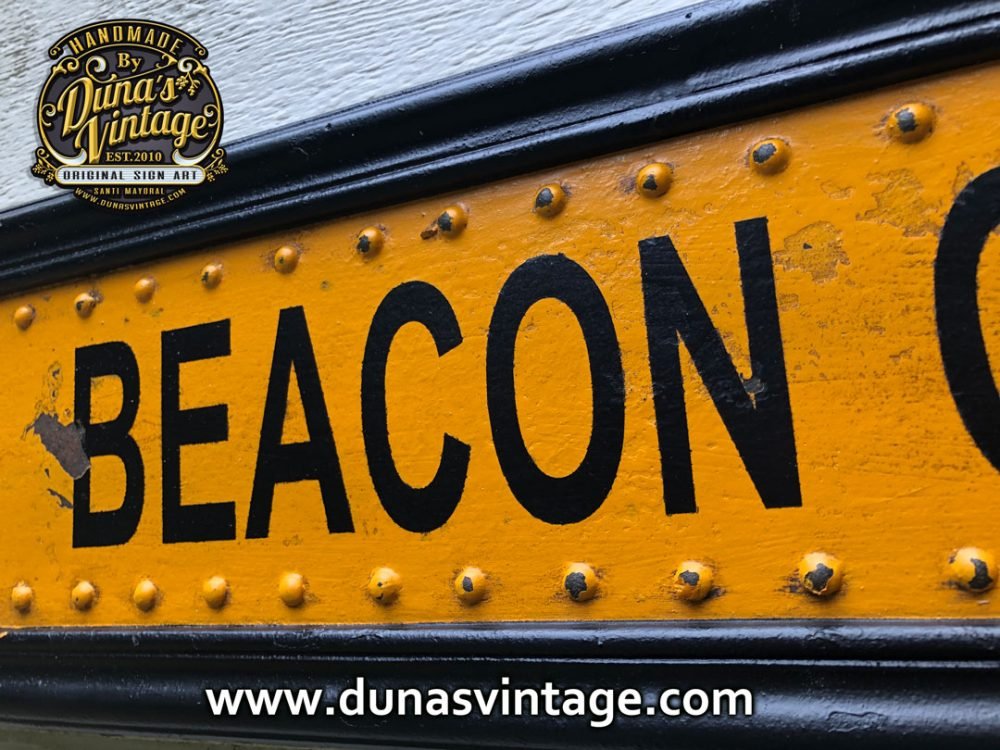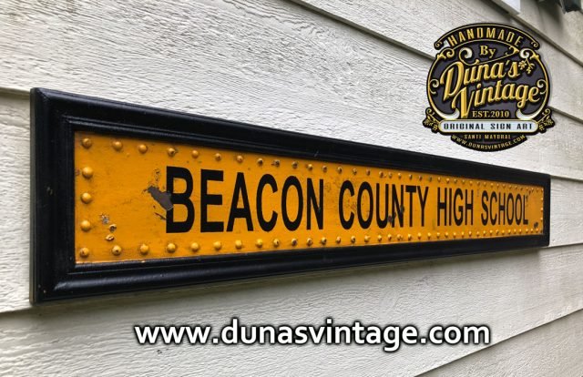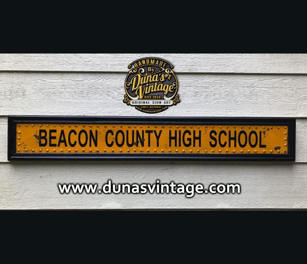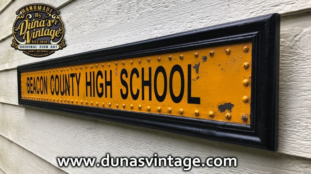 Cartel de Madera imitando lateral del School Bus de Beacon County de la serie Teen Wolf, el tamaño del cartel es de 1220x190cm.