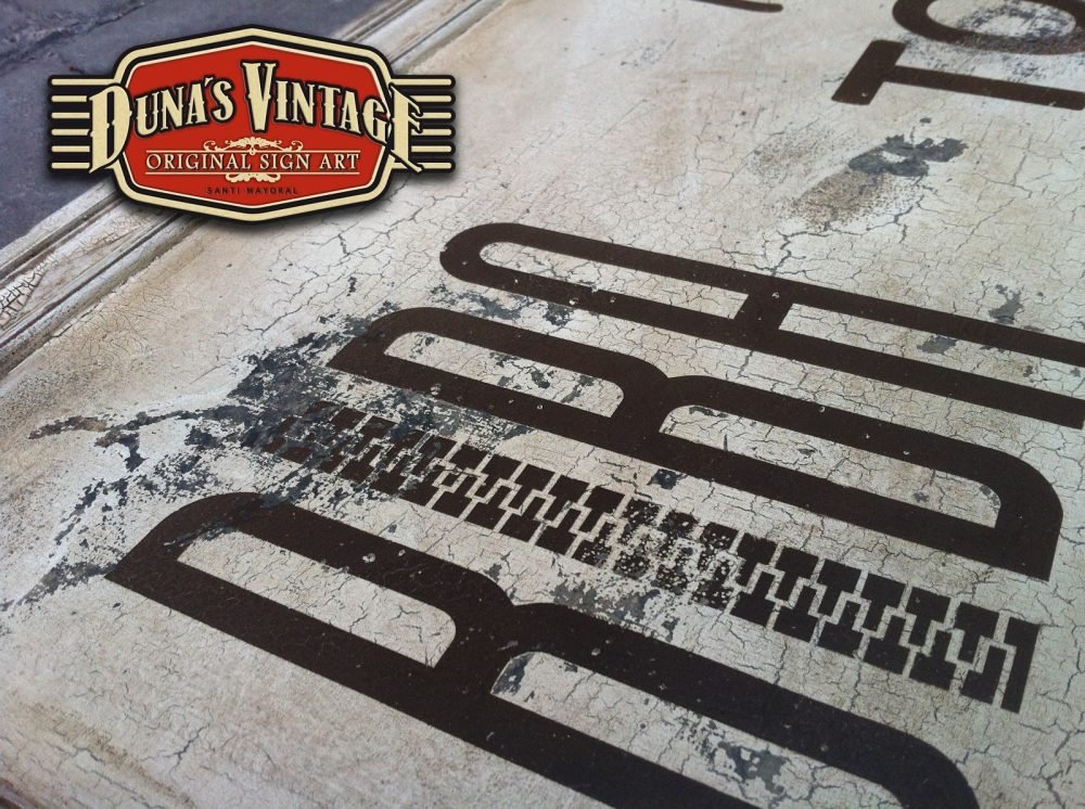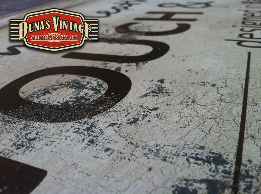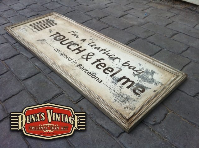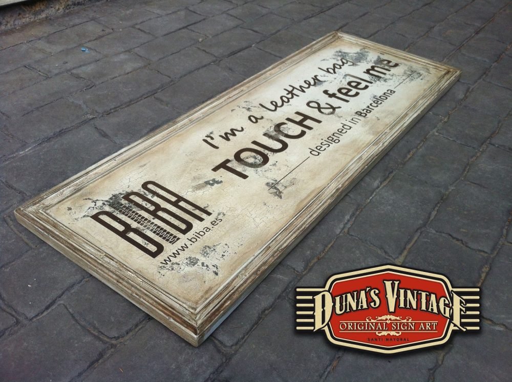 Cartel para la marca BIBA de bolsos, tamaño 1200x540mm este cartel esta tratado con el efecto que Duna´s Vintage emplea en sus carteles.