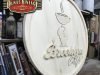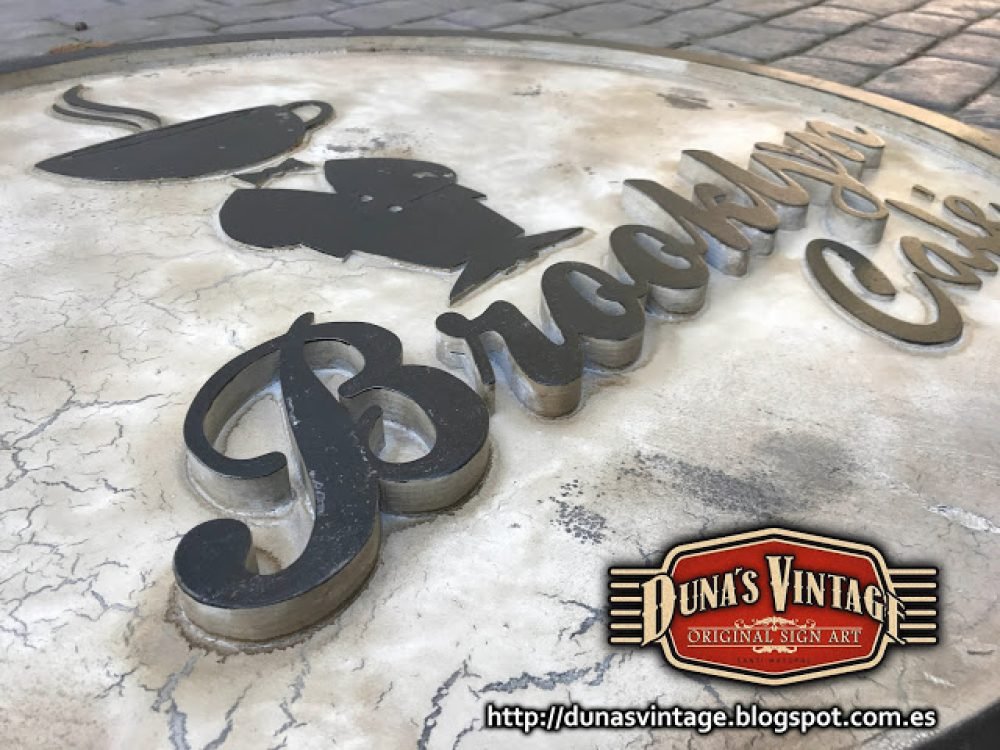 Cartel de madera tamaño 100cm de diámetro para nuevo Café en las Baleares, esta trabajado en madera con diferentes relieves en madera y acabado Vintage.