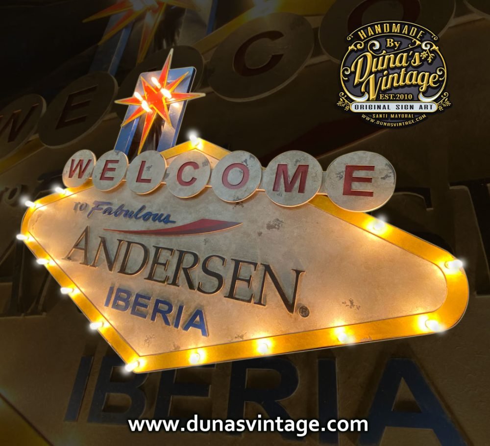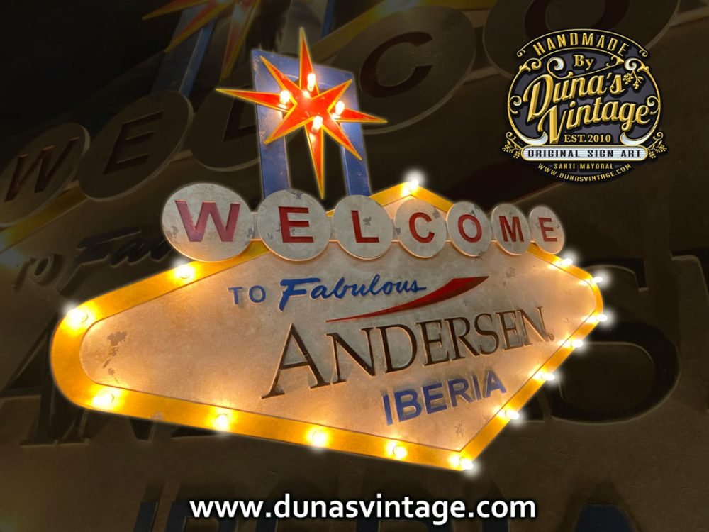Andersen Iberia con sede en Valencia este año para la cena de navidad a nivel nacional celebrada en Madrid a decidido sorprender a sus trabajadores con este cartel en la entrada del evento, como podéis ver este cartel da mucho juego no solo para bodas sino también para eventos que quieras darle un toque diferente, la verdad que ha gustado mucho a sus invitados. Este cartel esta fabricado en madera con relieve y iluminacion, su tamaño es de 1700x1300mm.