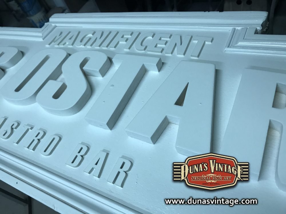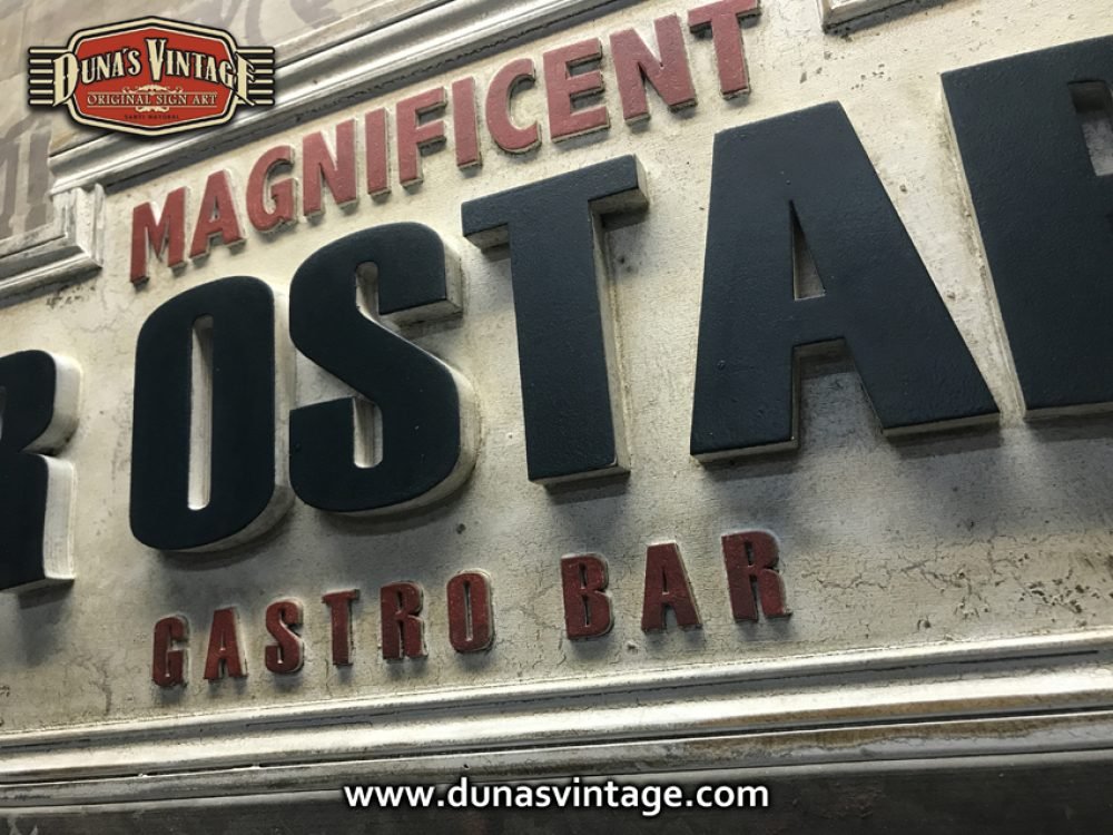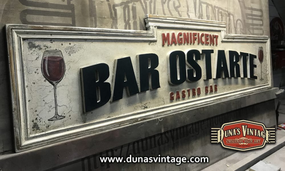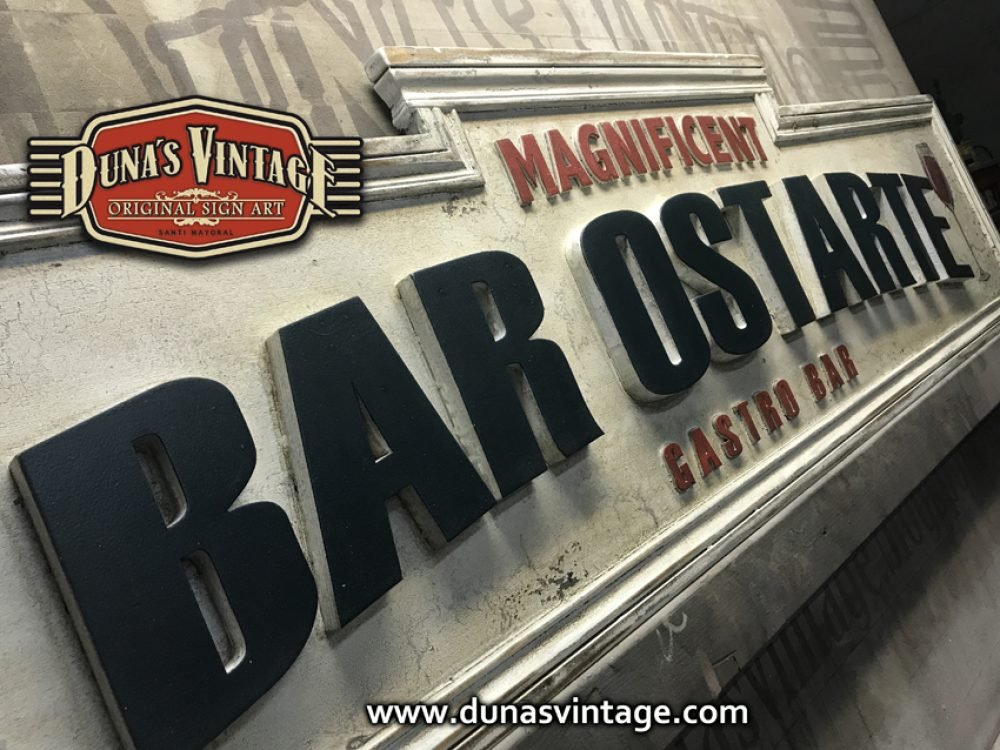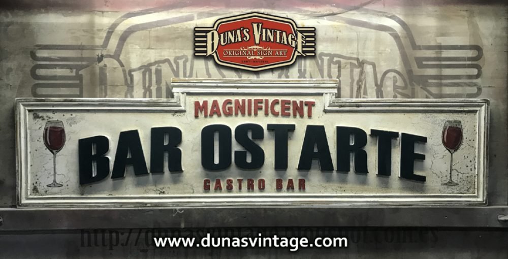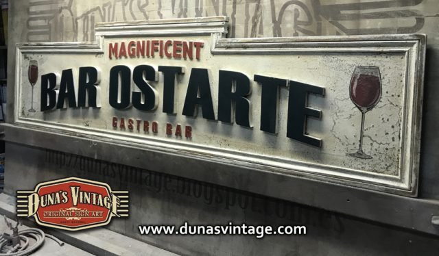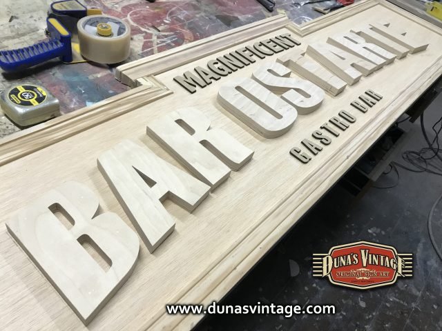 Cartel de madera tamaño 1540x420mm trabajado en contrachapado de 18mm y letras en relieve acabado Vintage.