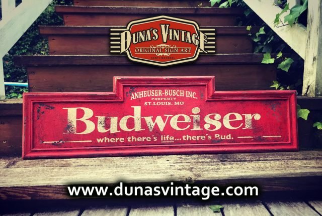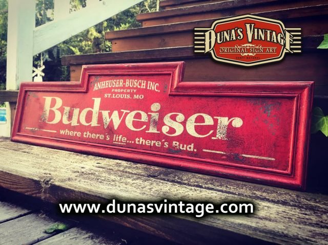 Cartel de Madera contrachapado de 10mm, Budweiser tamaño 900x260mm.