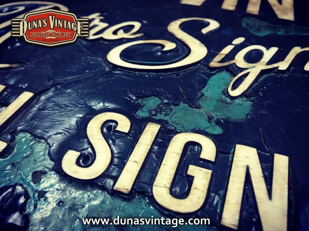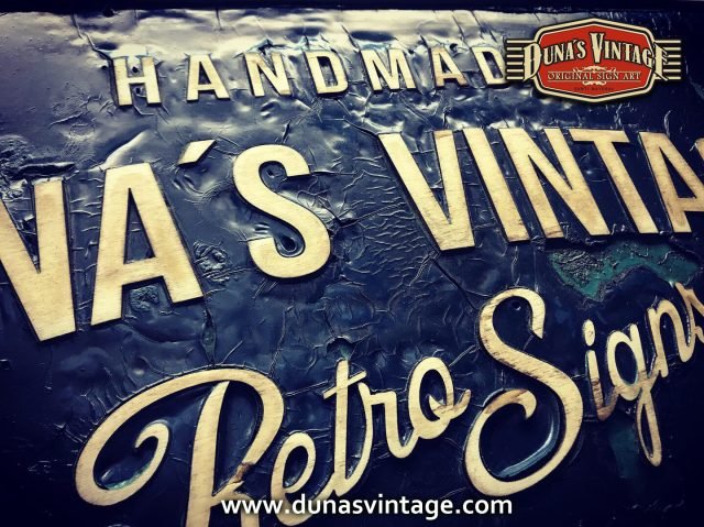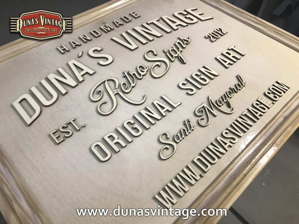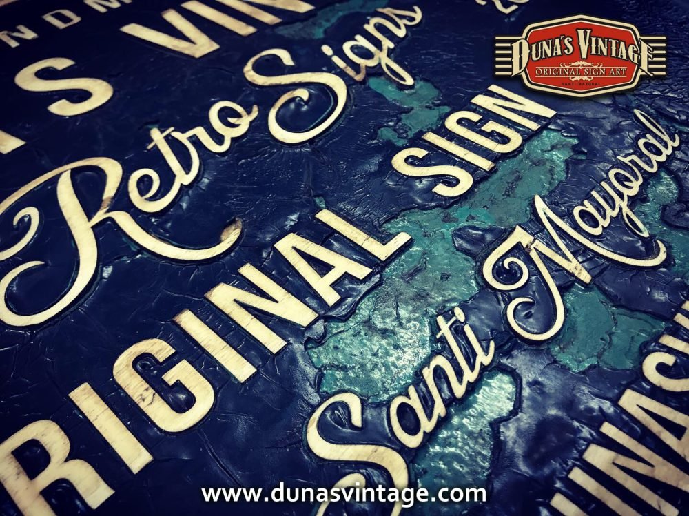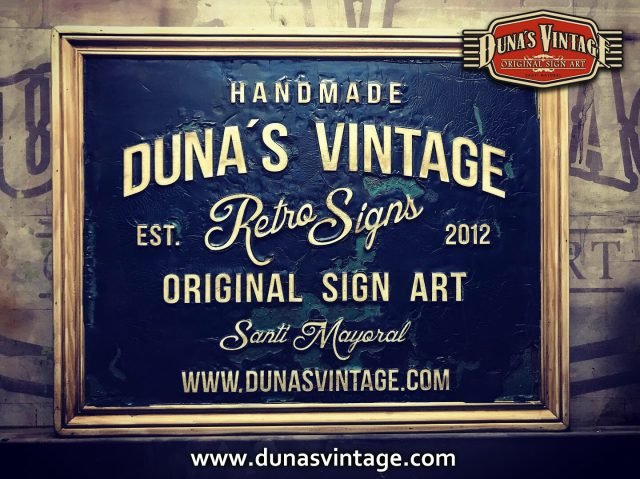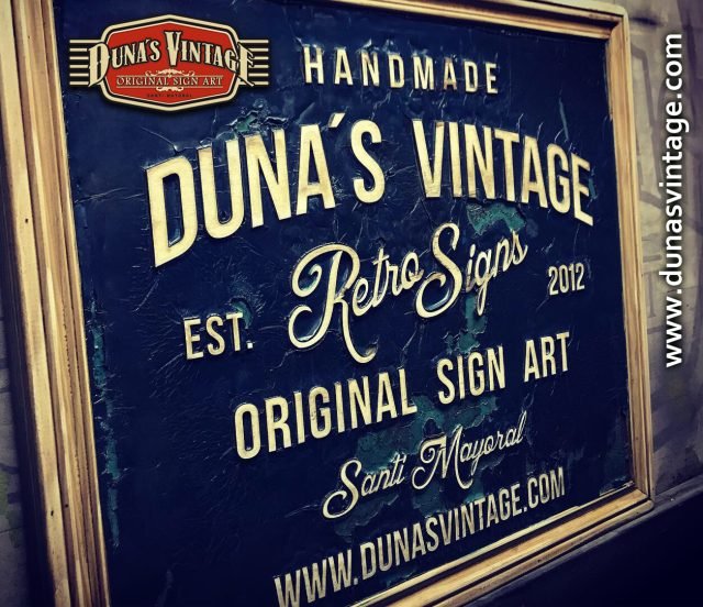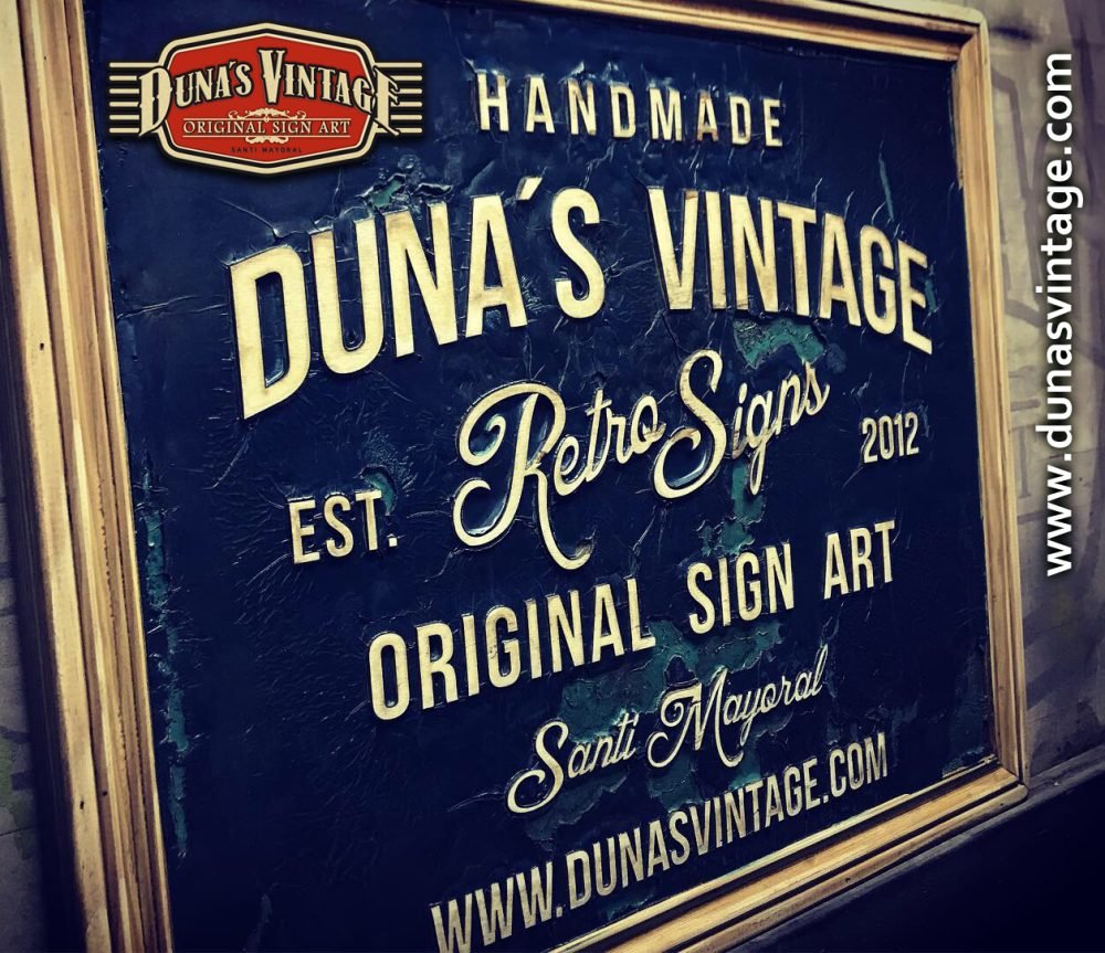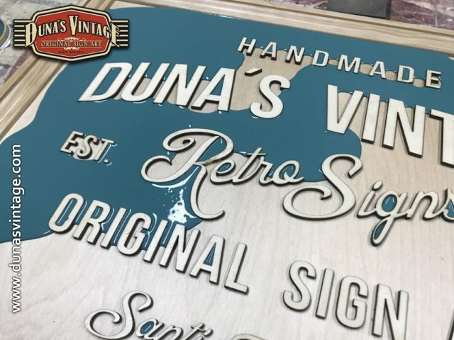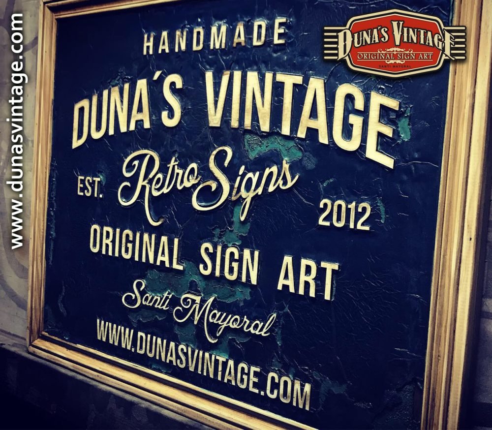 Cartel de Madera Duna´s Vintage Handmade tamaño 510x650mm, este cartel esta trabajado sobre base contrachapado de 18mm y base de 4mm con las letras cortadas en láser, como se aprecia en las fotos se a rellenado con pintura previamente con una base para romper la pintura y y darle el efecto que se ve en la foto, se a jugado con dos tonos de color para cuando rompa la pintura salga el otro color.