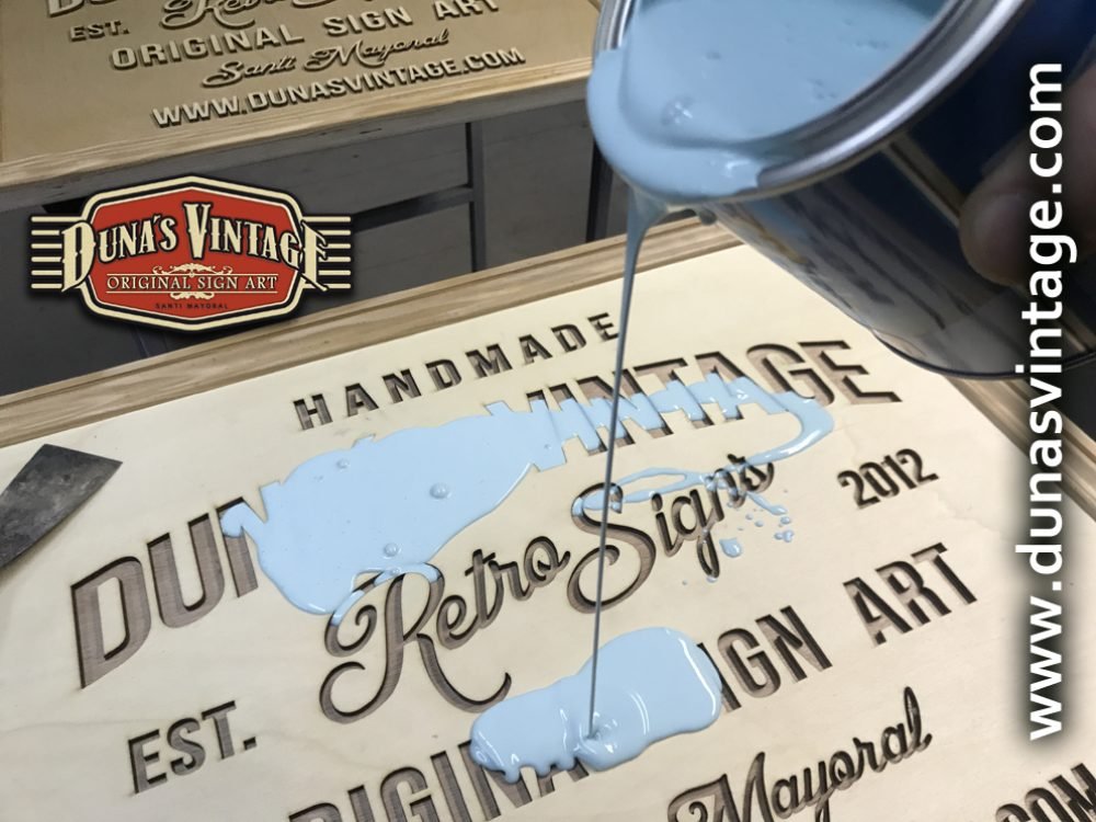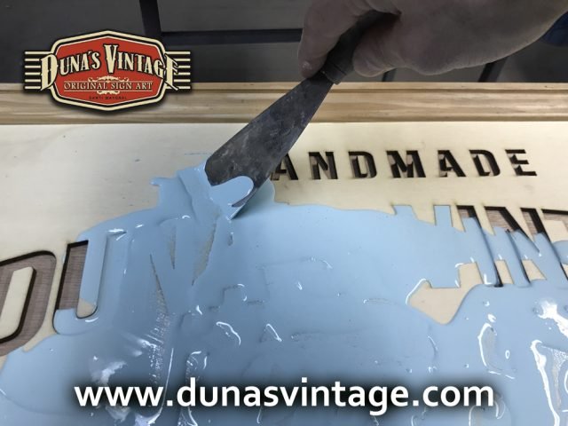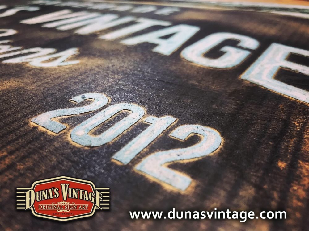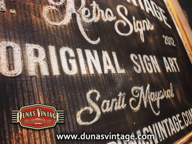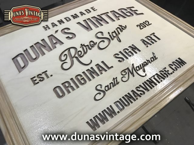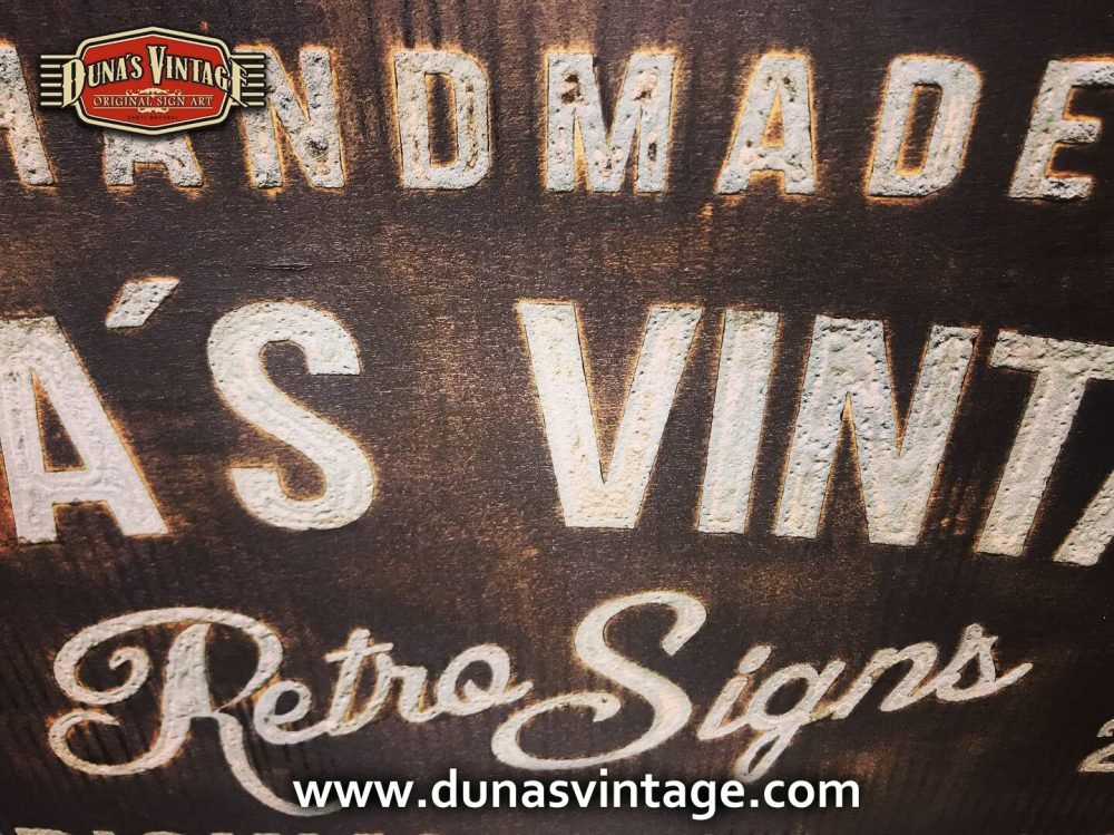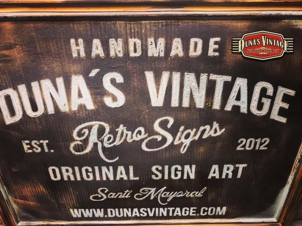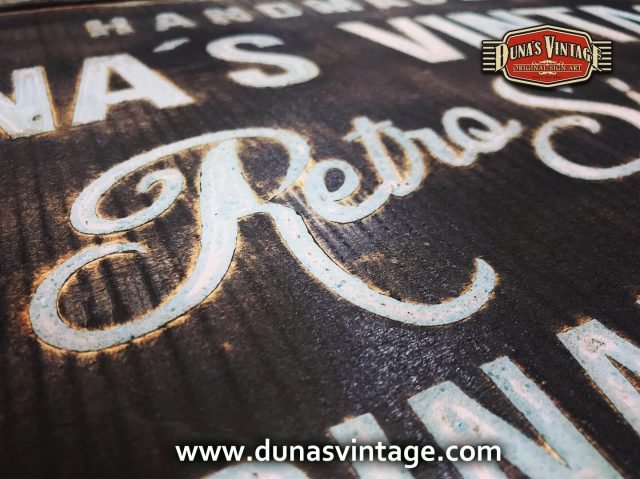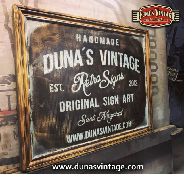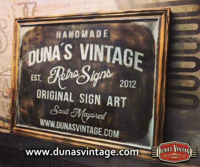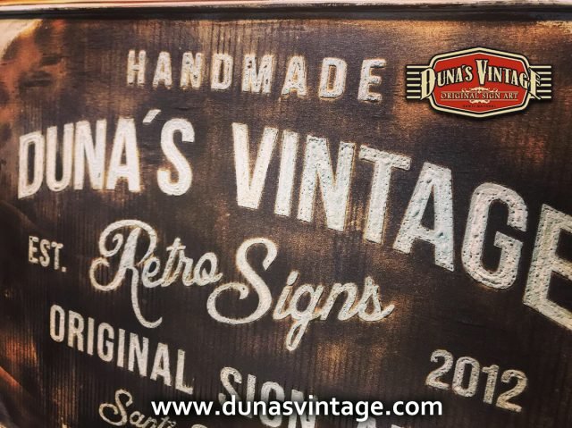 Cartel de Madera Duna´s Vintage Handmade tamaño 510x650mm, este cartel esta trabajado sobre base contrachapado de 18mm y base de 4mm con las letras cortadas en láser, como se aprecia en las fotos las letras rellenas de pintura con pasta relieve, para conseguir esta técnica se necesita capas de barniz y unas cuantas capas de pintura para llenar todas las letras.