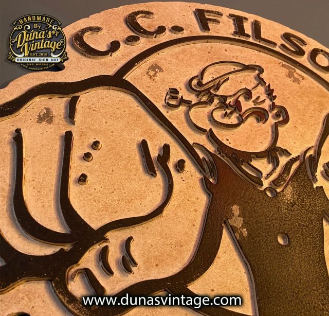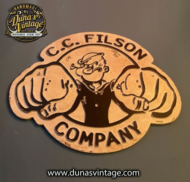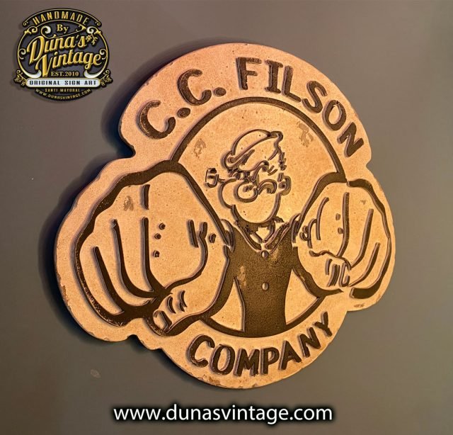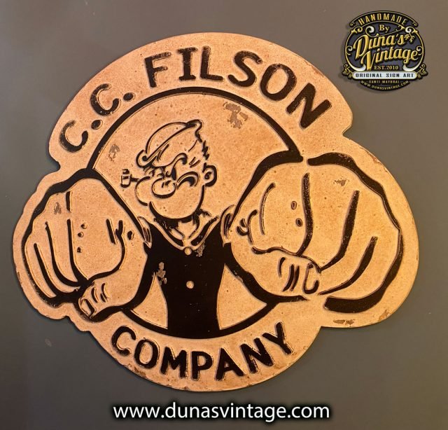 Otro cartel que se marcha para Asturias de la marca C.C. FILSON COMPANY de la edición limitada de Popeye tamaño 40x50cm trabajado en madera contrachapada, relieve en DM de 4mm y un toque vintage.
