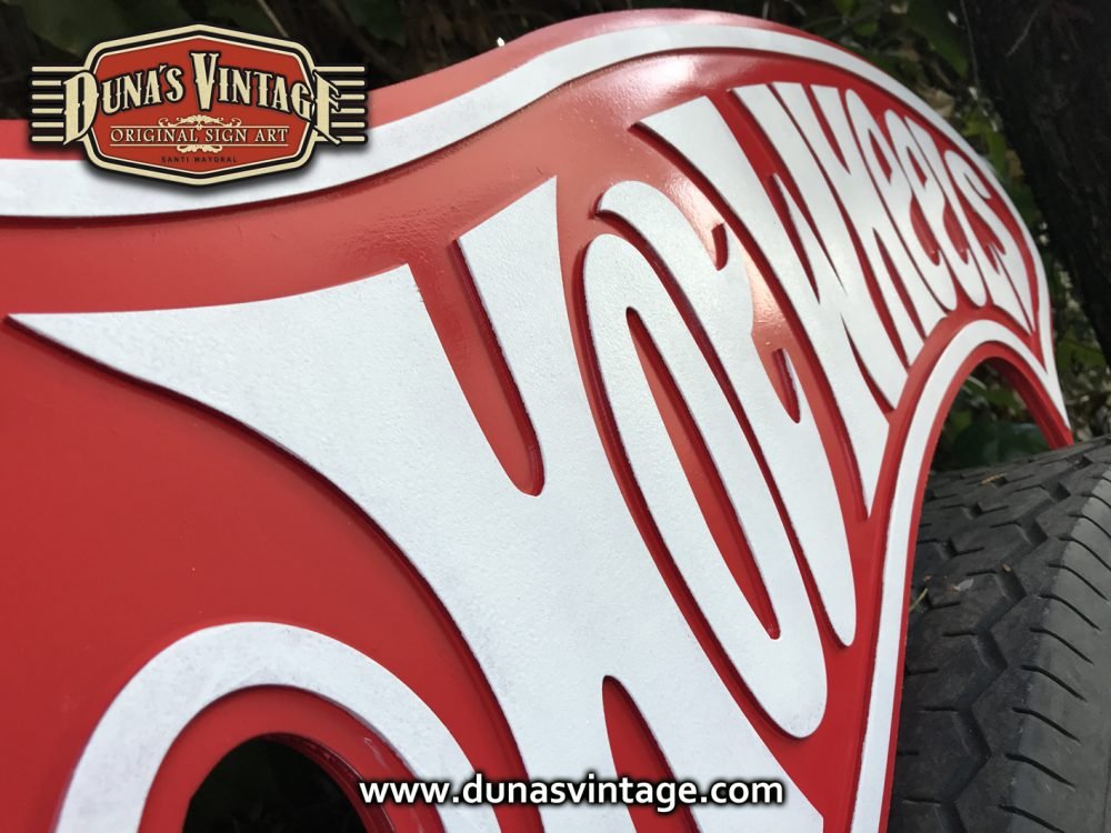 Cartel de Madera en relieve HOT WHEELS, trabajado en DM de 3mm con letras en relieve tamaño del cartel 970x380mm.