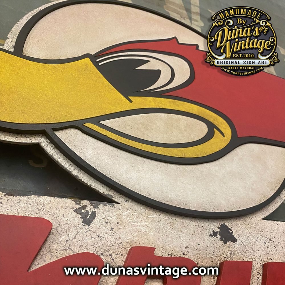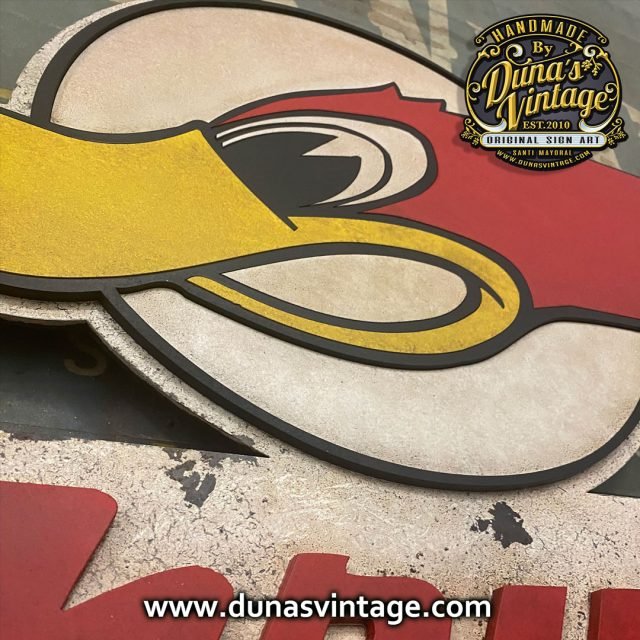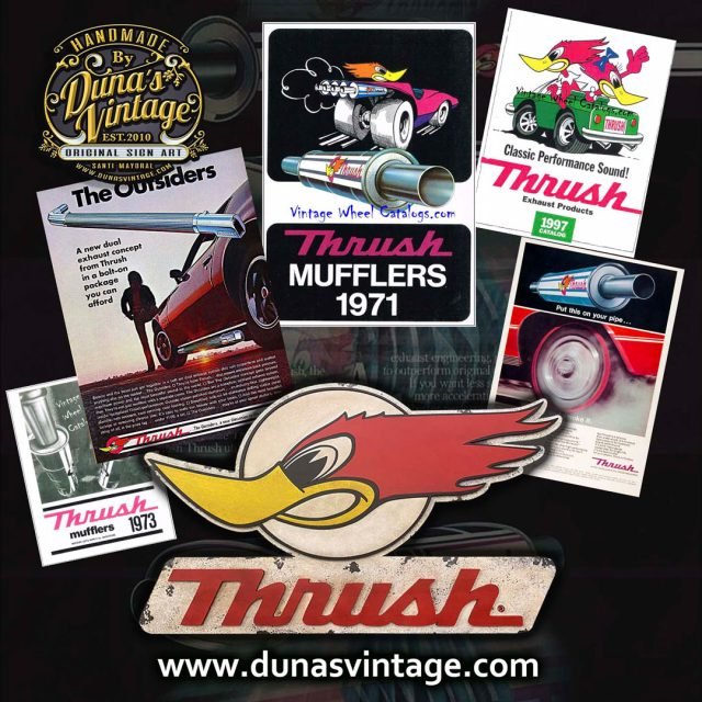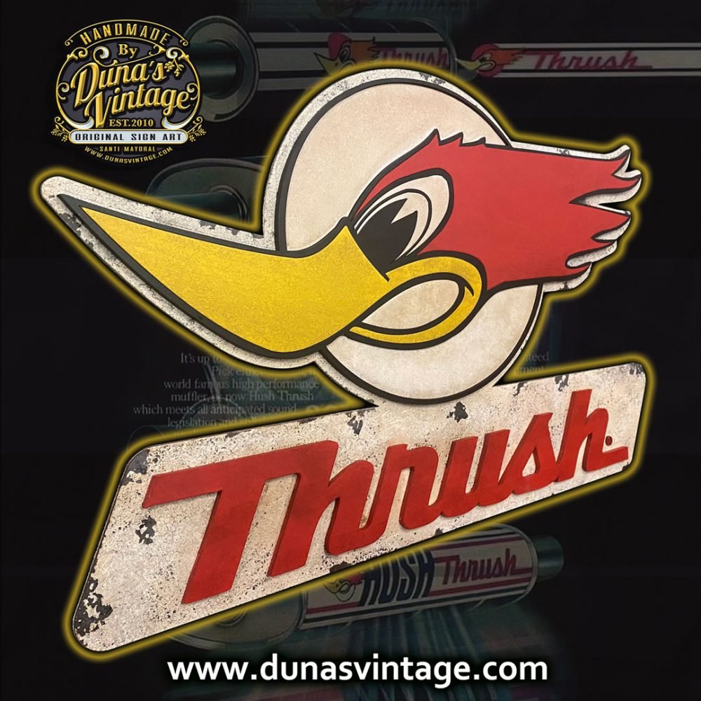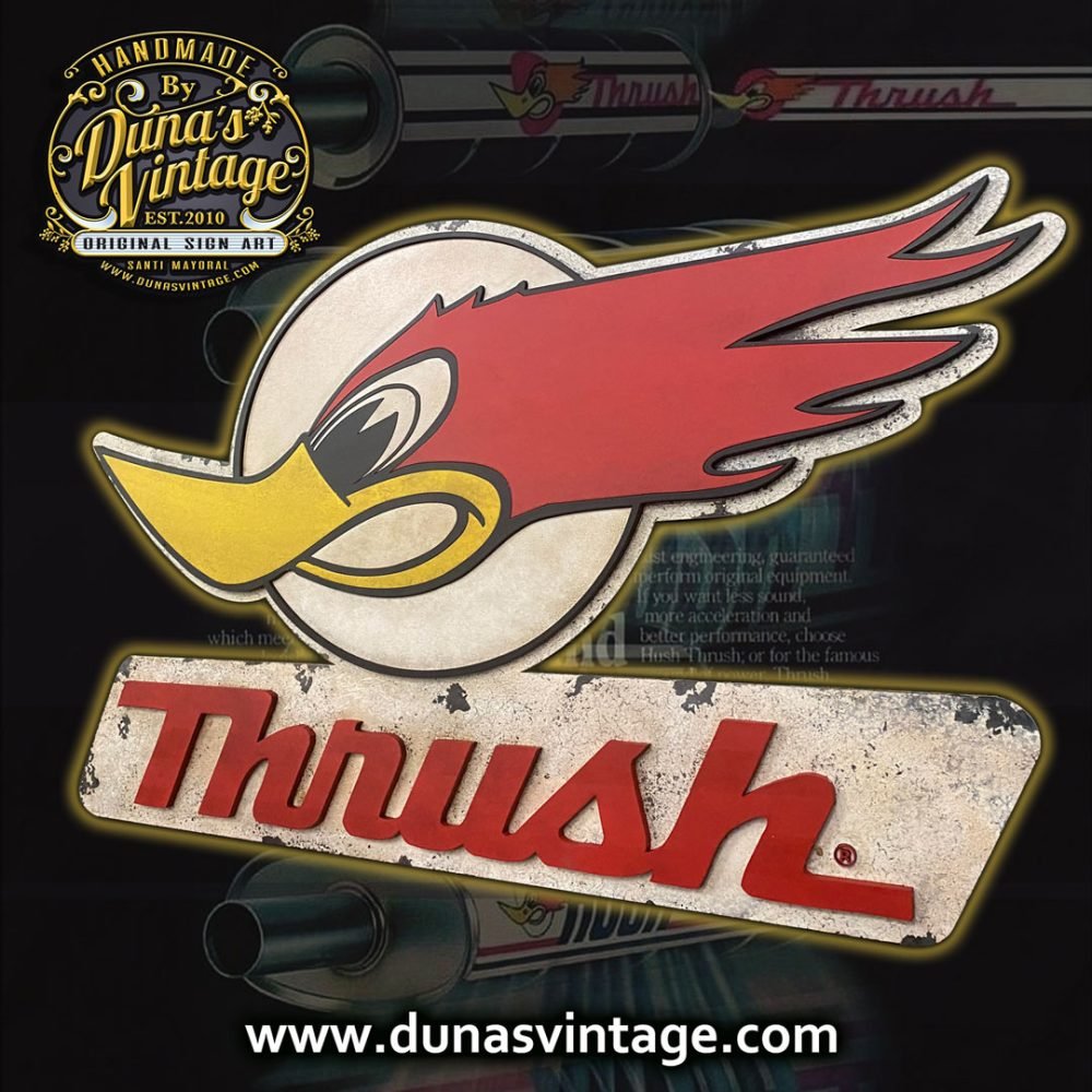 Aquí os dejo el logotipo de la marca Thush Exhaust de 1966 una de las marcas mas importantes de silenciadores para coches Americanos. Este cartel esta trabajado en DM de 4mm con diferentes relieves y acabado Vintage, el tamaño es de 800x470mm y lo podrás encontrar en la tienda de Duna´s Vintage.