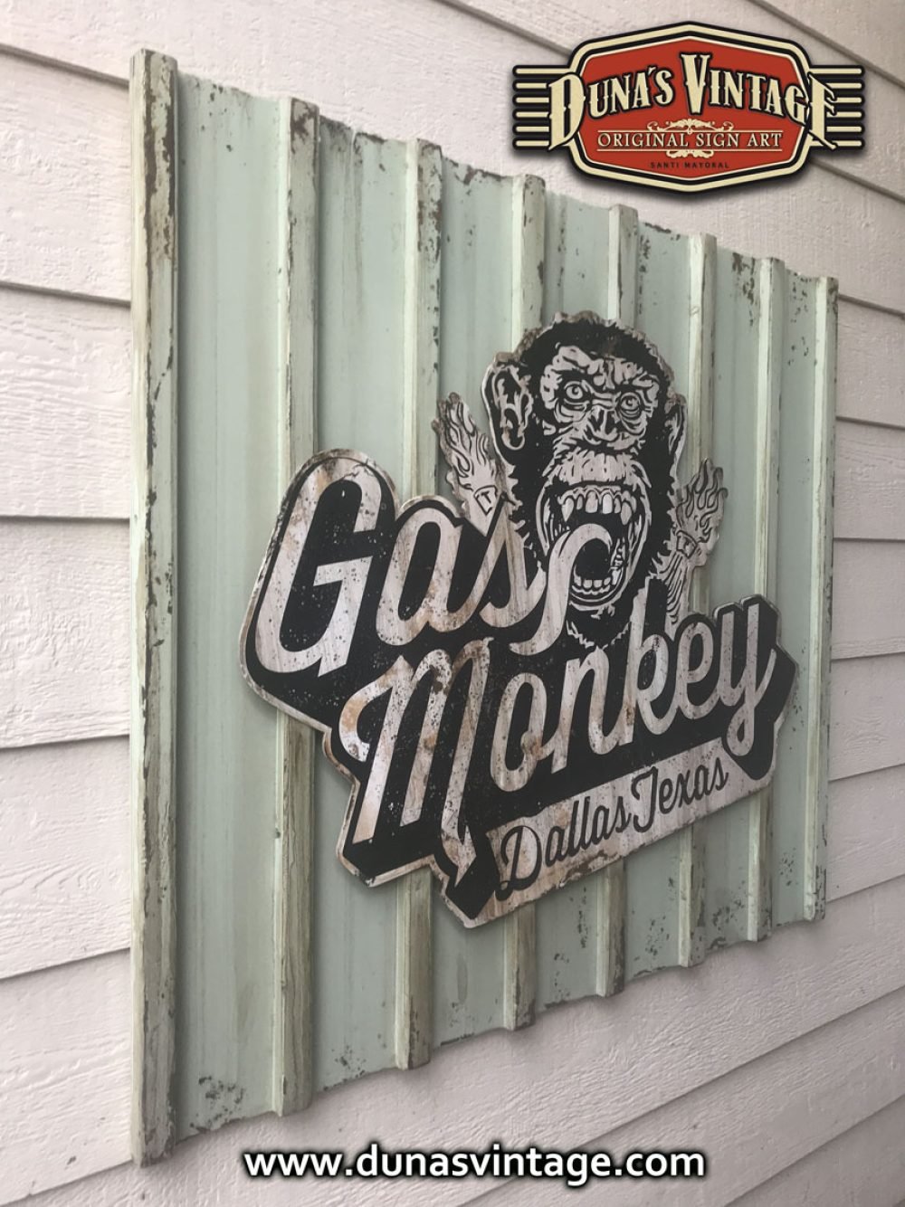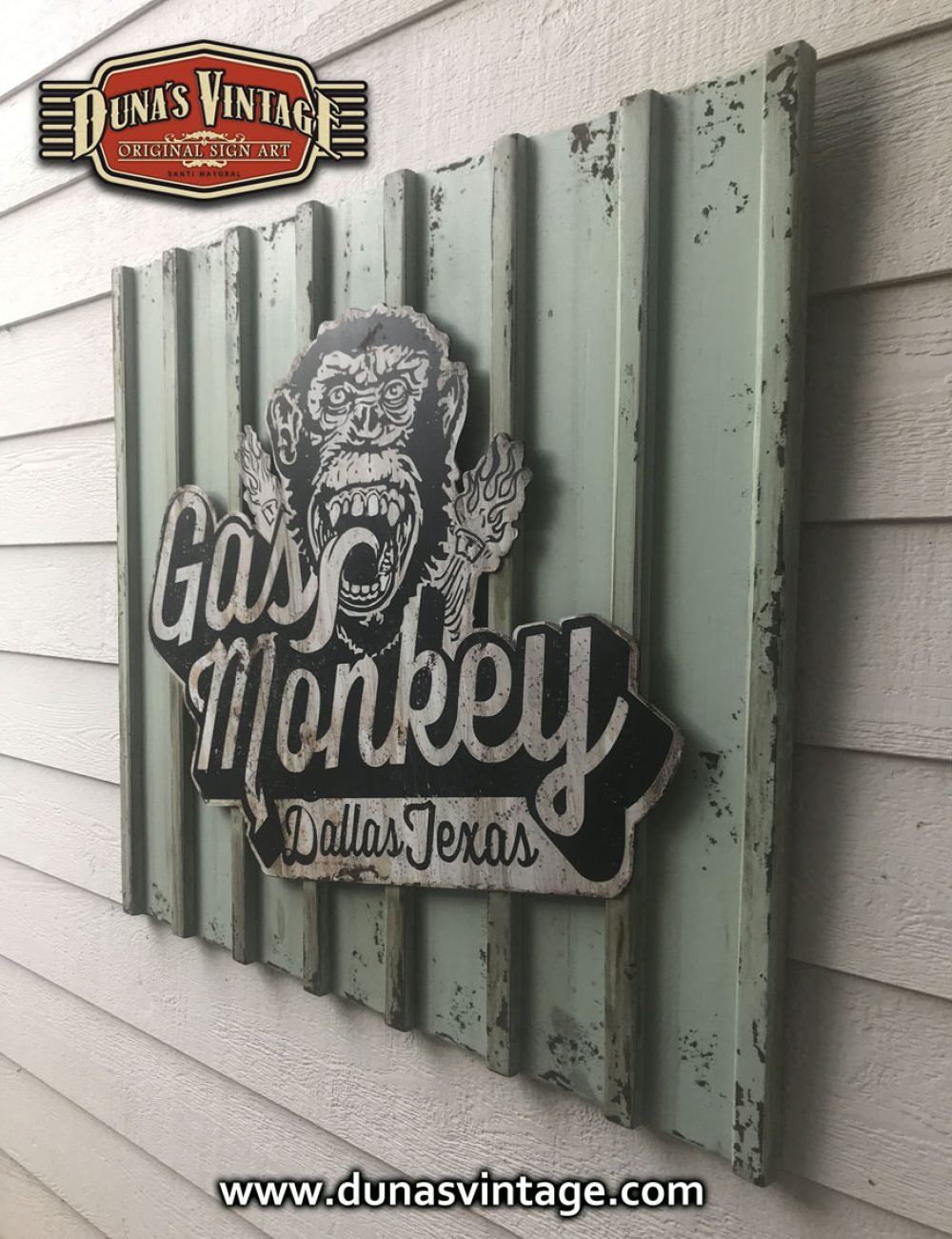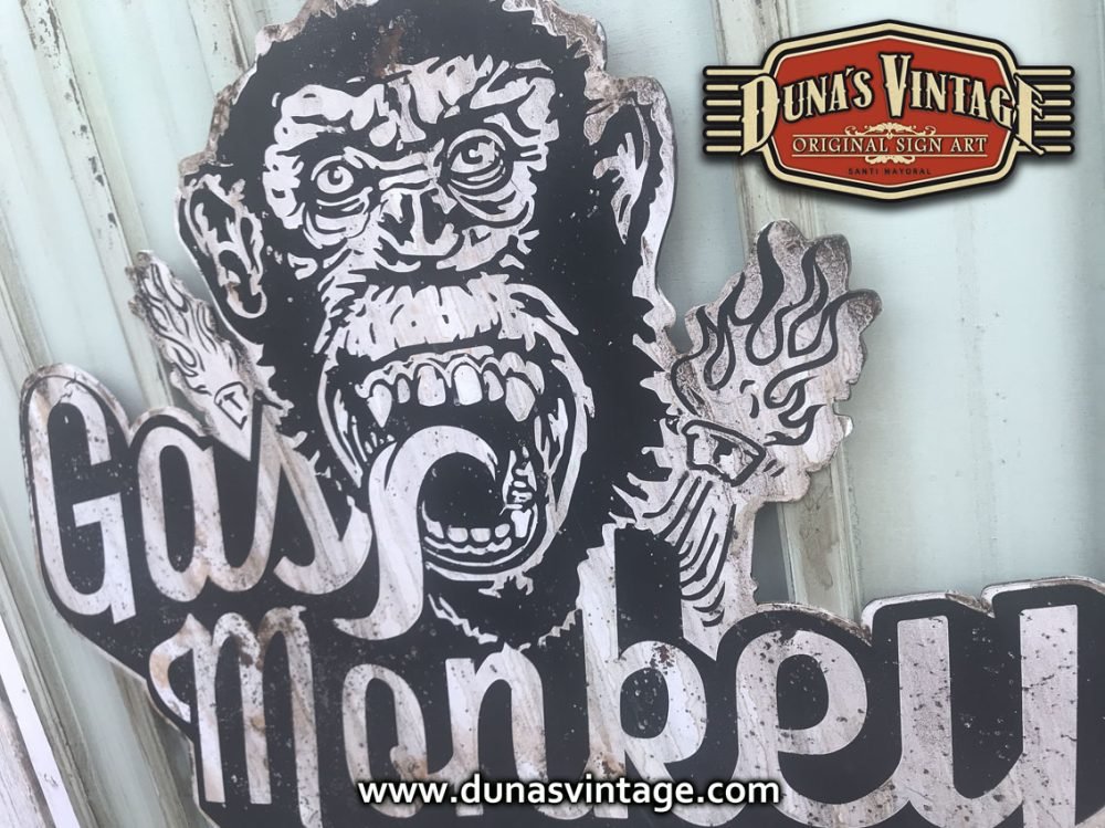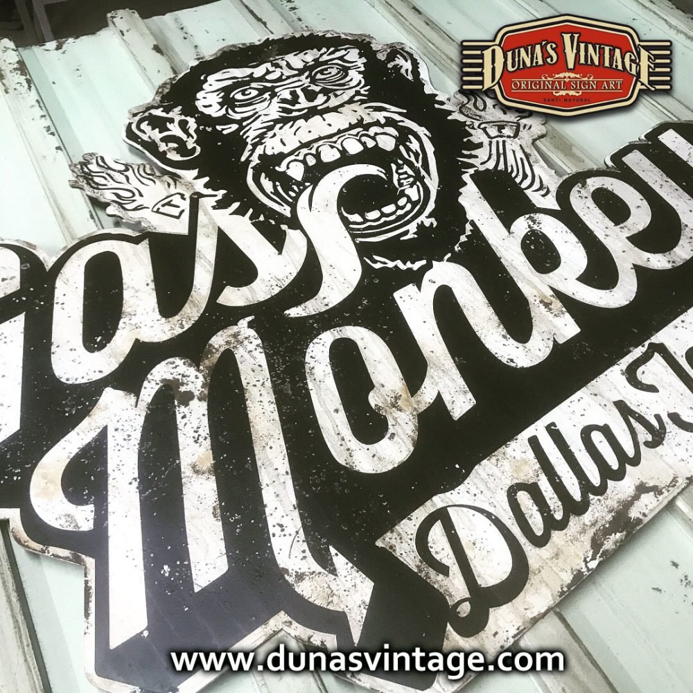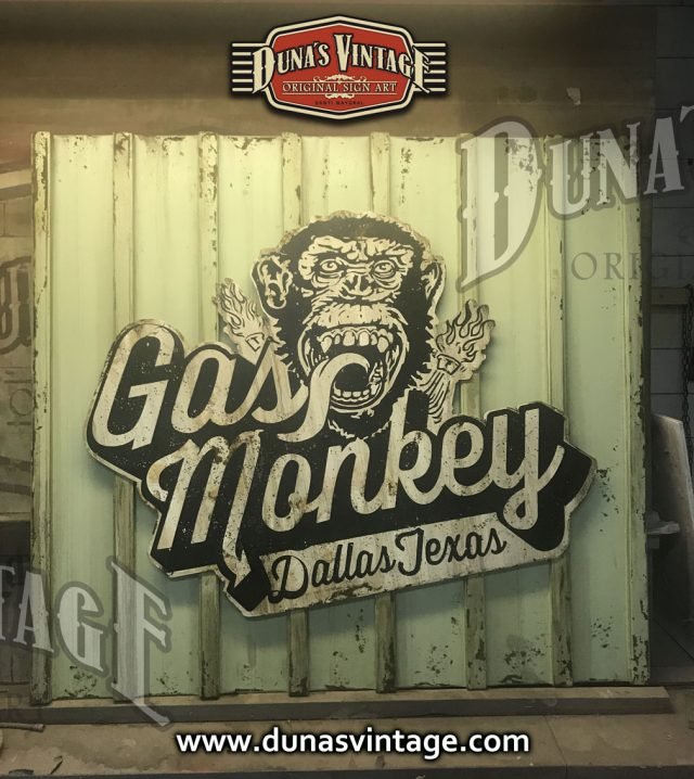 Cartel de Madera Gas Monkey tamaño 1000x1100mm, este cartel es el que podemos encontrar en la fachada del garaje de Gas Monkey Dallas Texas.