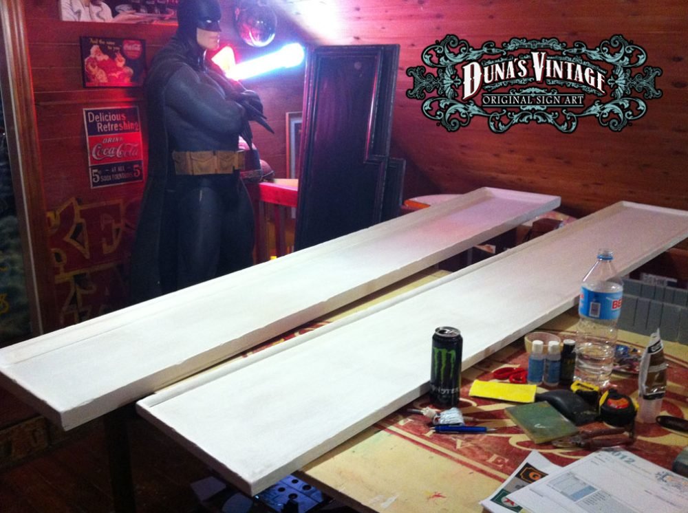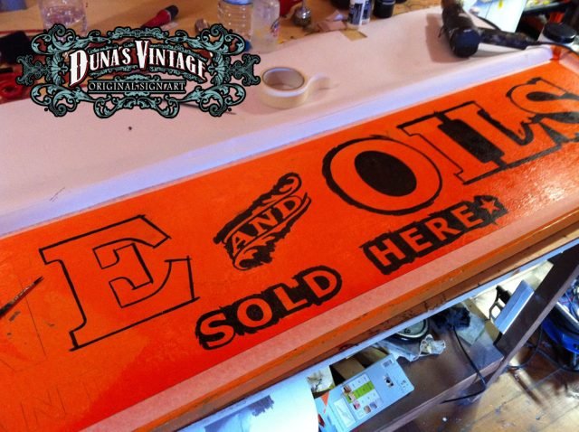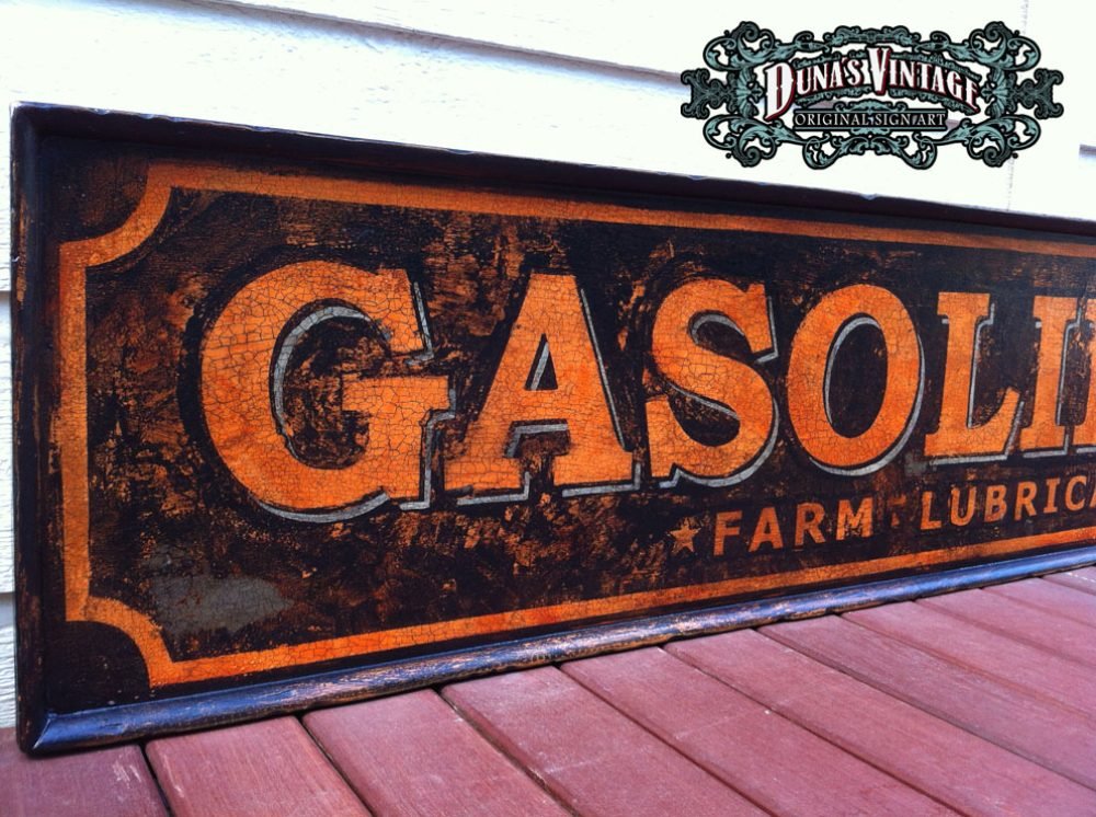Cartel de estación de gasolina de los años 50´ GASOLINE and OILS, tamaño 2500x400mm.