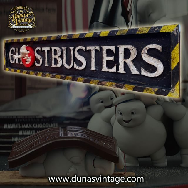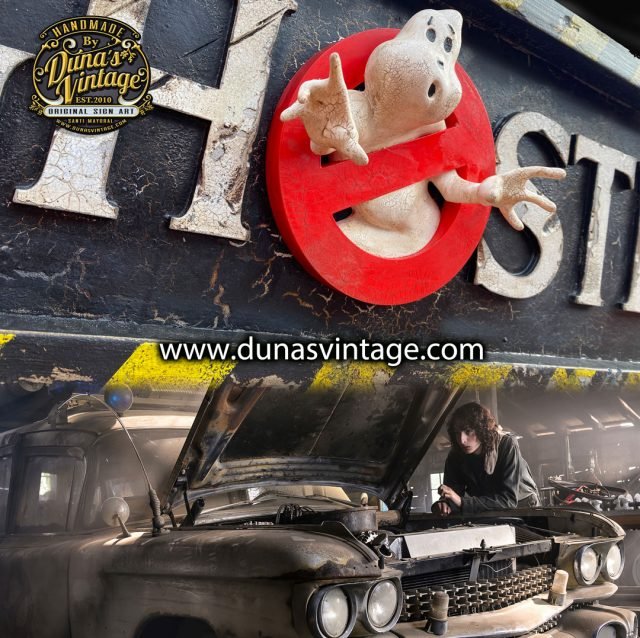 Aquí tenéis mi ultimo trabajo un cartel que hacia tiempo que quería hacer sobre la película GHOSTBUSTERS AFTERLIFE, Cazafantasmas en Spain. Como en esta película rescatan el coche de un granero y su estado es muy Vintage como mis carteles pues no he dudado en hacer un cartel, esta vez con letras en relieve y el cazafantasmas en 3D y dándole un toque vintage a todo el cartel como de costumbre. Lo tenéis a la venta en la tienda de Duna´s Vintage, el tamaño es 165x35cm.