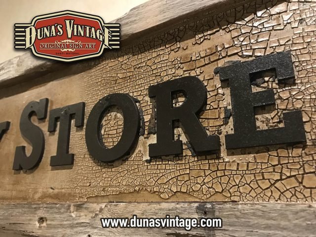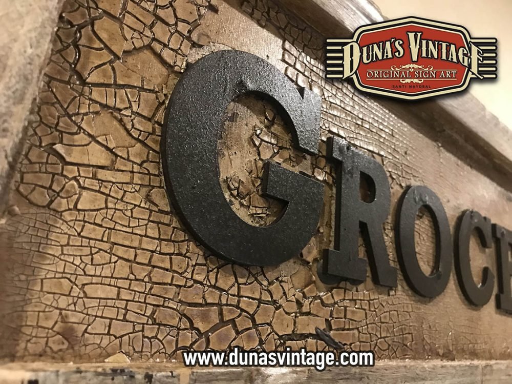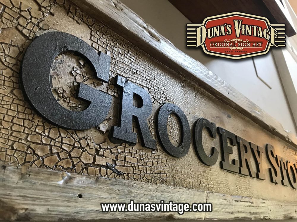 Cartel de Madera contrachapado de 18mm y listones de madera de pino con efecto vintage y letras en relieve de 4mm de espesor, tamaño 950x210mm. For sale 125€