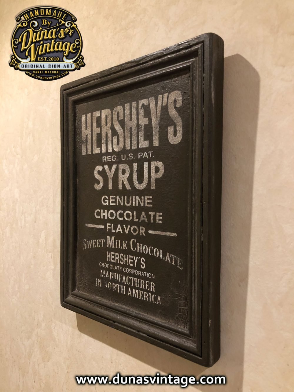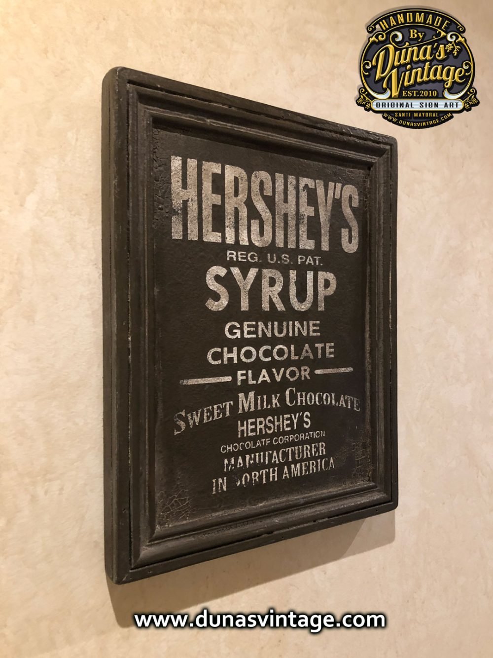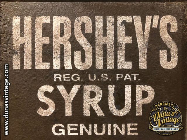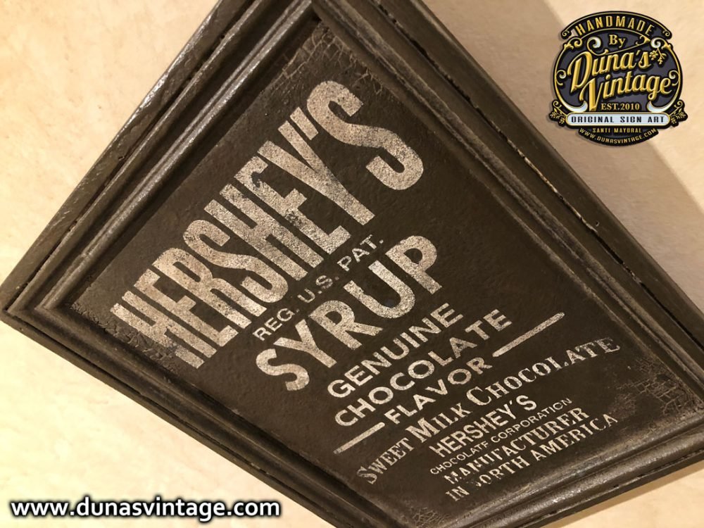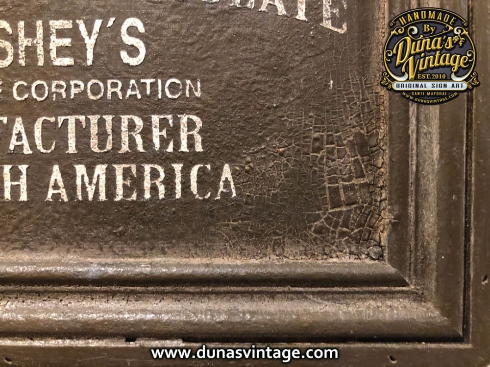 Cartel de madera contrachapado de 18mm pintado a mano tamaño 330x260mm de la marca de chocolate Hershey´s. For sale 75€.
