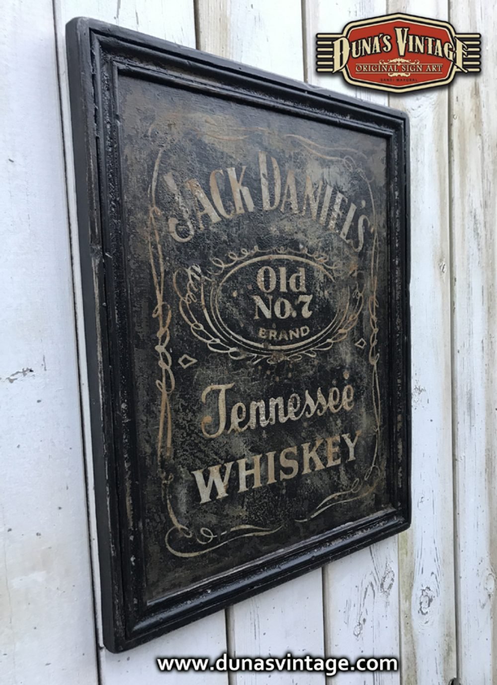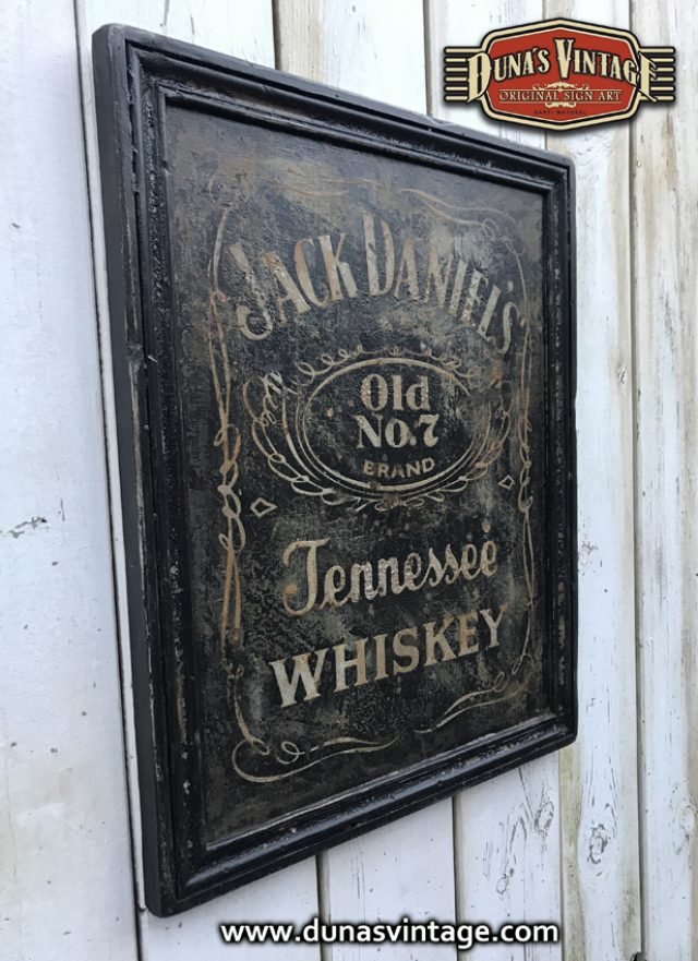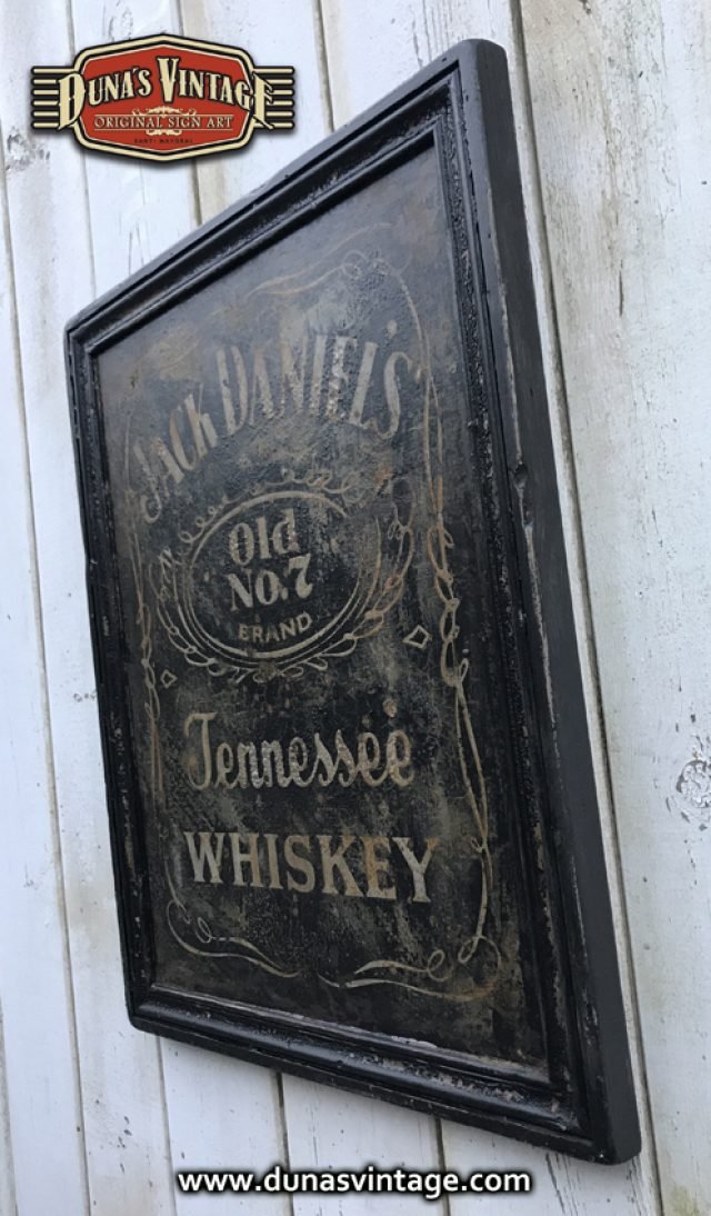 Cartel de Madera Jack Daniel´s tamaño 450x570mm, trabajado en madera de 18mm con efecto Óxido.