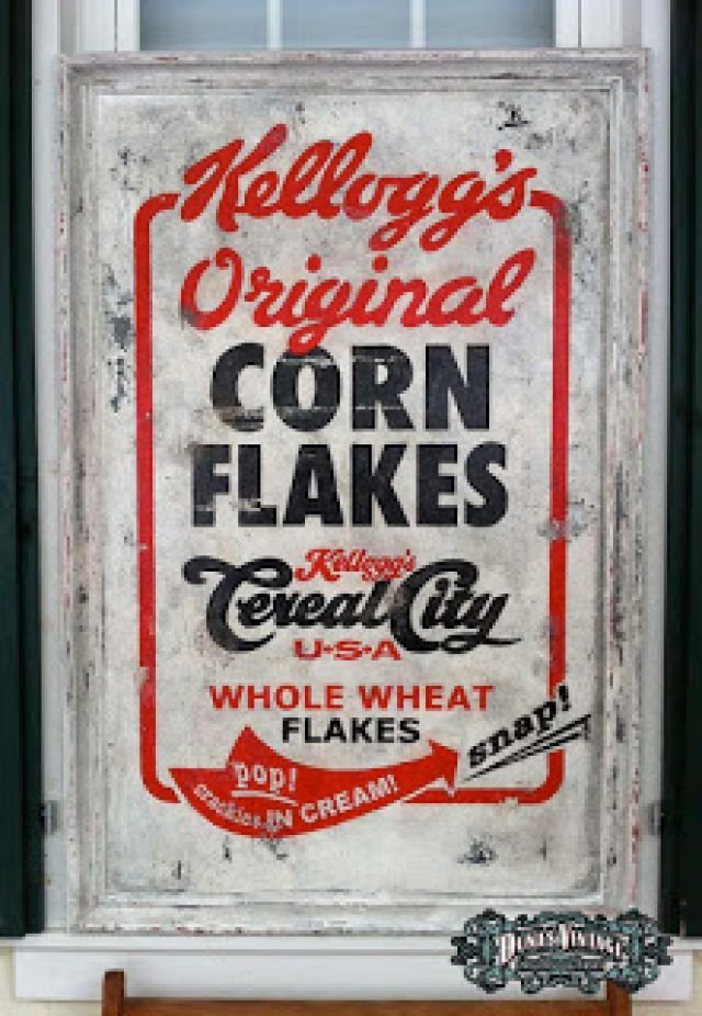 Cartel de Kellogg´s Original Corn Flakes tamaño 1220x800mm. Este cartel es del año 1940, Duna´s Vintage ha trabajado mucho el efecto envejecido, para lograr la imagen del auténtico cartel creado hace más de 70 años.