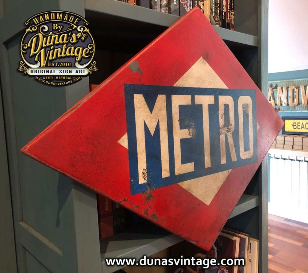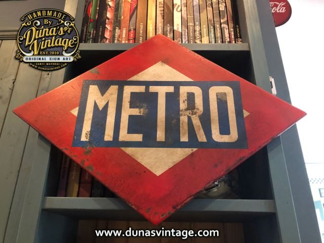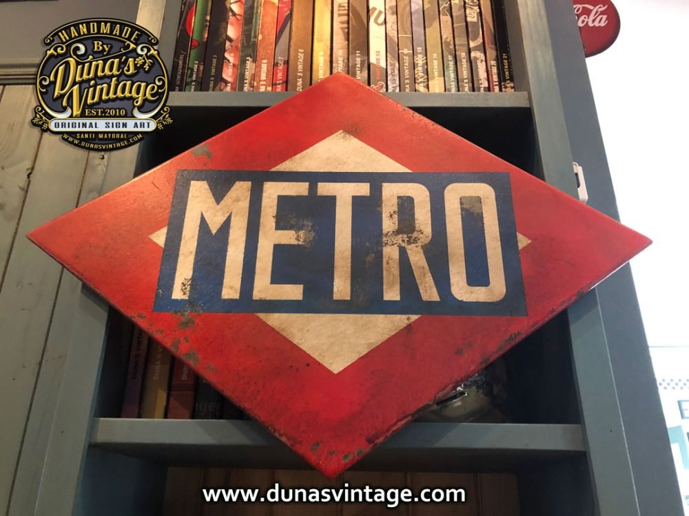 Cartel Metro Madrid Tamaño 700x500mm, este es de los mas grandes que he pintado hsta el día de hoy si lo queréis por 150€ es vuestro con transporte incluido a nivel nacional (SPAIN) acabado Vintage como de costumbre en mis trabajos.