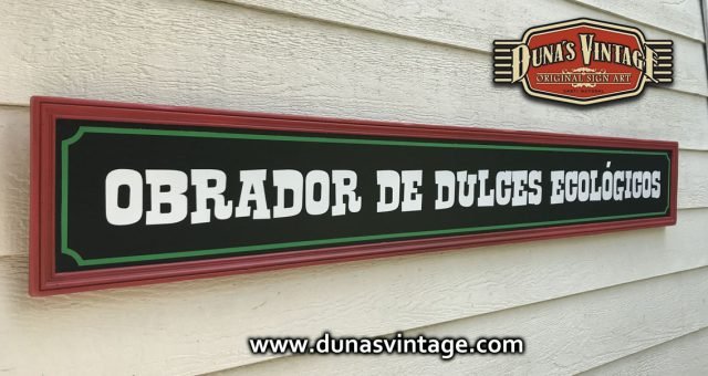 Cartel de Madera OBRADOR DE DULCES ECOLÓGICOS (Valladolid). Cartel de madera contrachapado de 18mm tamaño 1780x260mm.