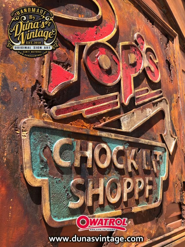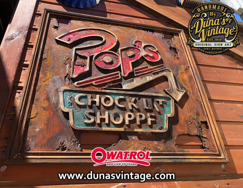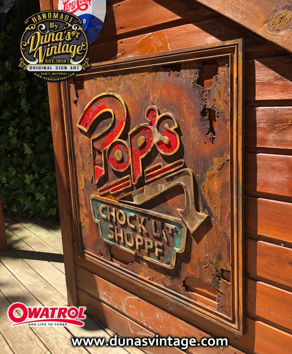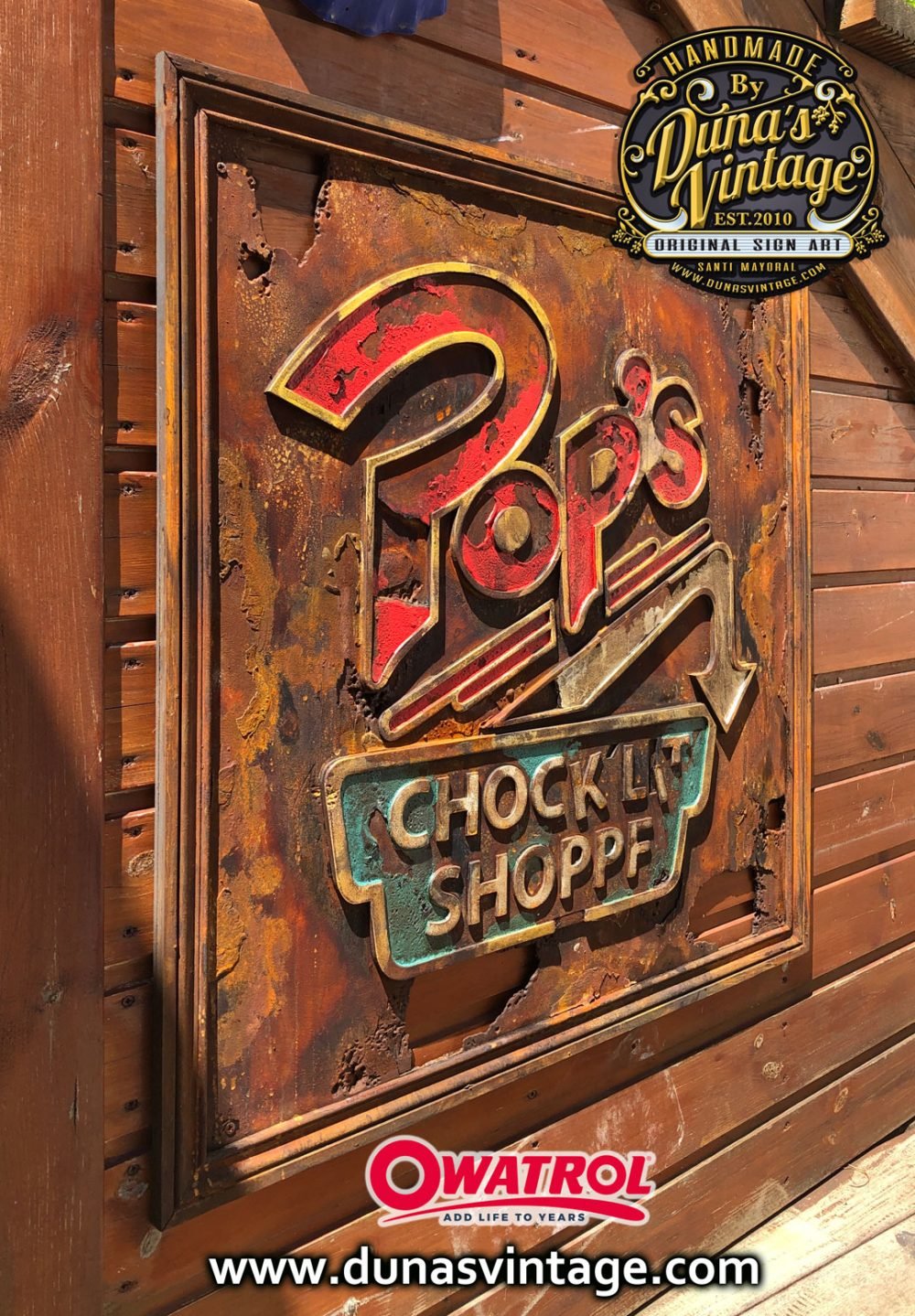 Cartel de Madera en Relieve con efecto Oxidado y deteriorado por el tiempo de la serie RIVERDALE, el cartel es del Diner Pop´s, Bar de encuentro de los protagonistas de la serie tamaño 63x68cm.