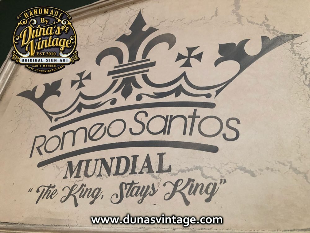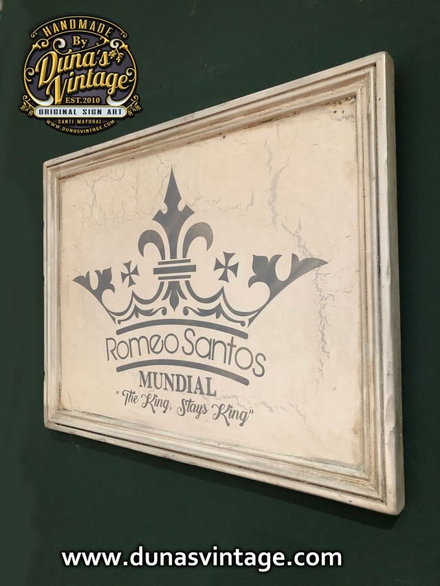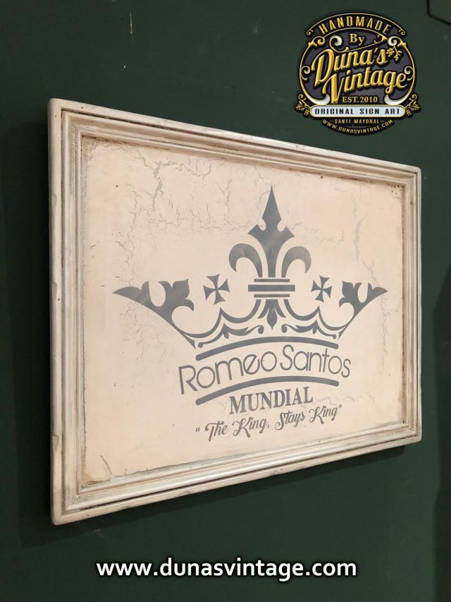 Cartel de Madera Romeo Santos con efecto envejecido, tamaño 500x400mm.