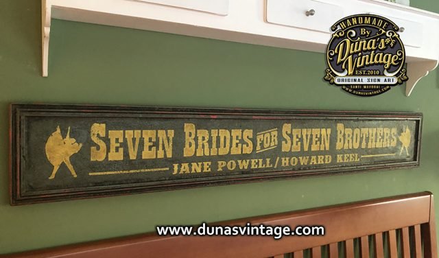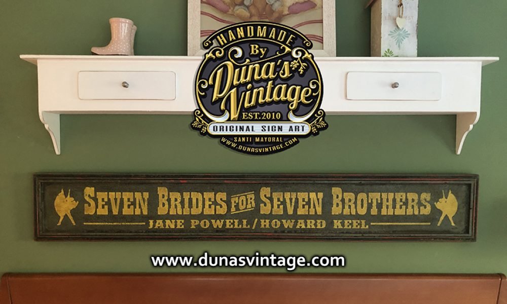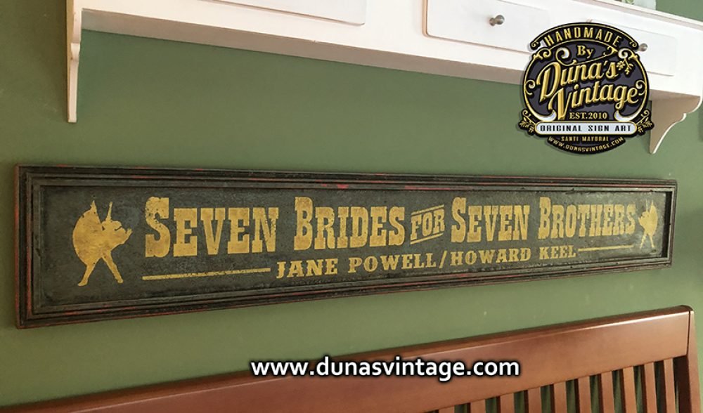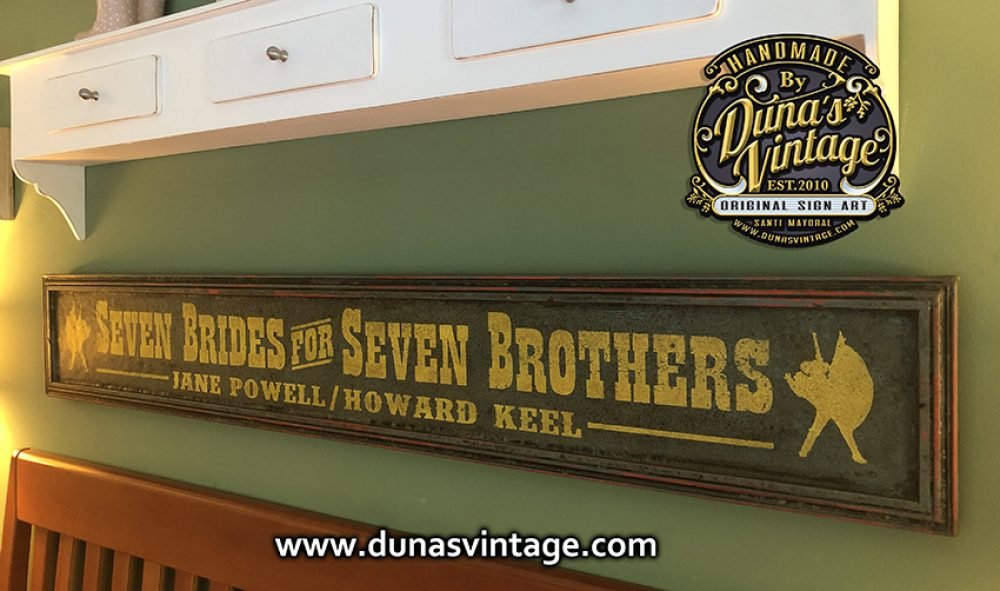 Cartel de Madera pintado a mano tamaño 144x22cm SEVEN BRIDES FOR SEVEN BROTHERS.