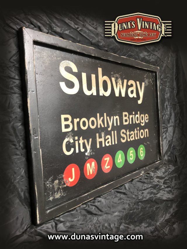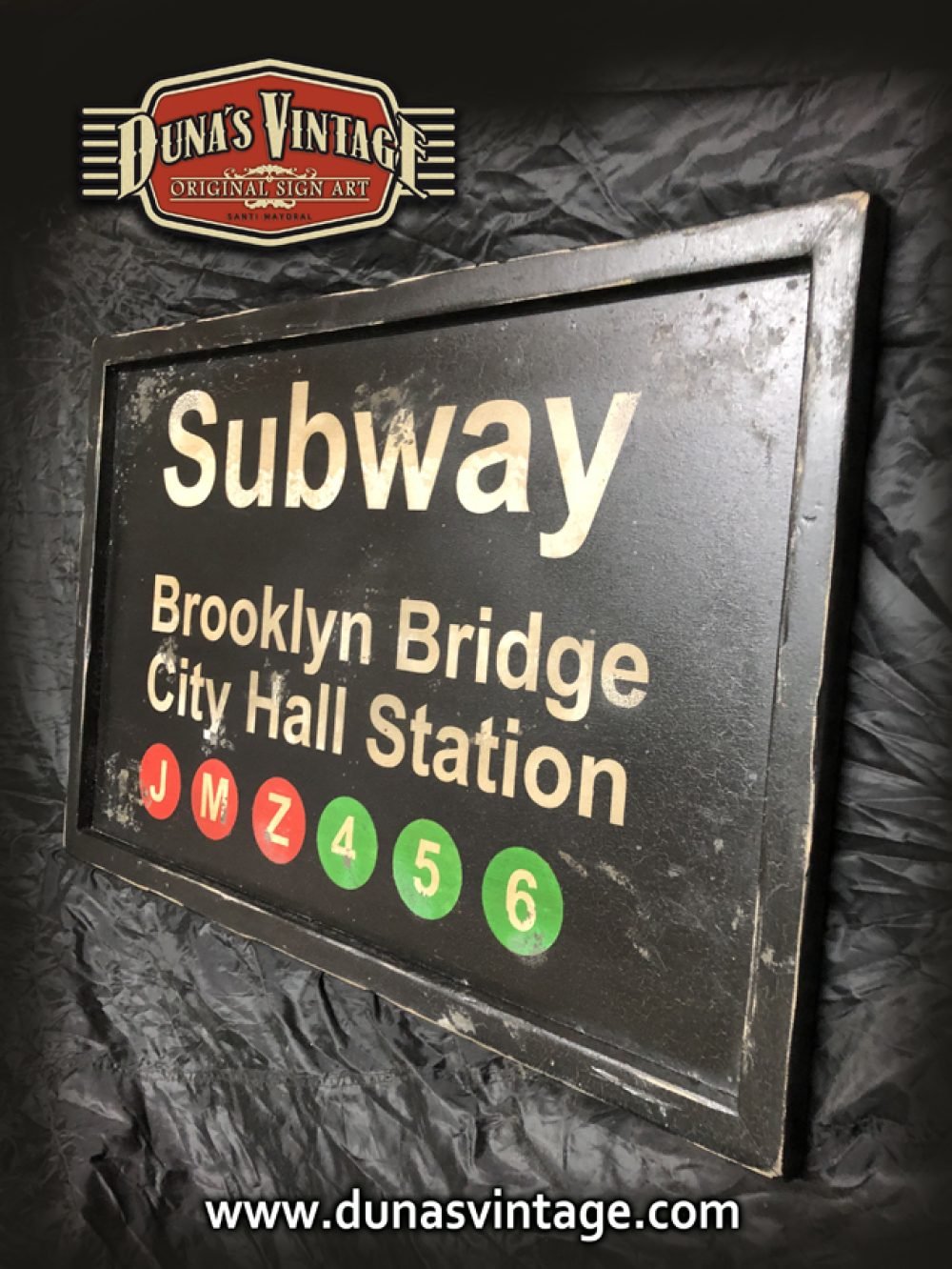 Cartel de Madera reproduciendo las placas de metro de New york, Subway Brooklyn Bridge tamaño 100x65cm.