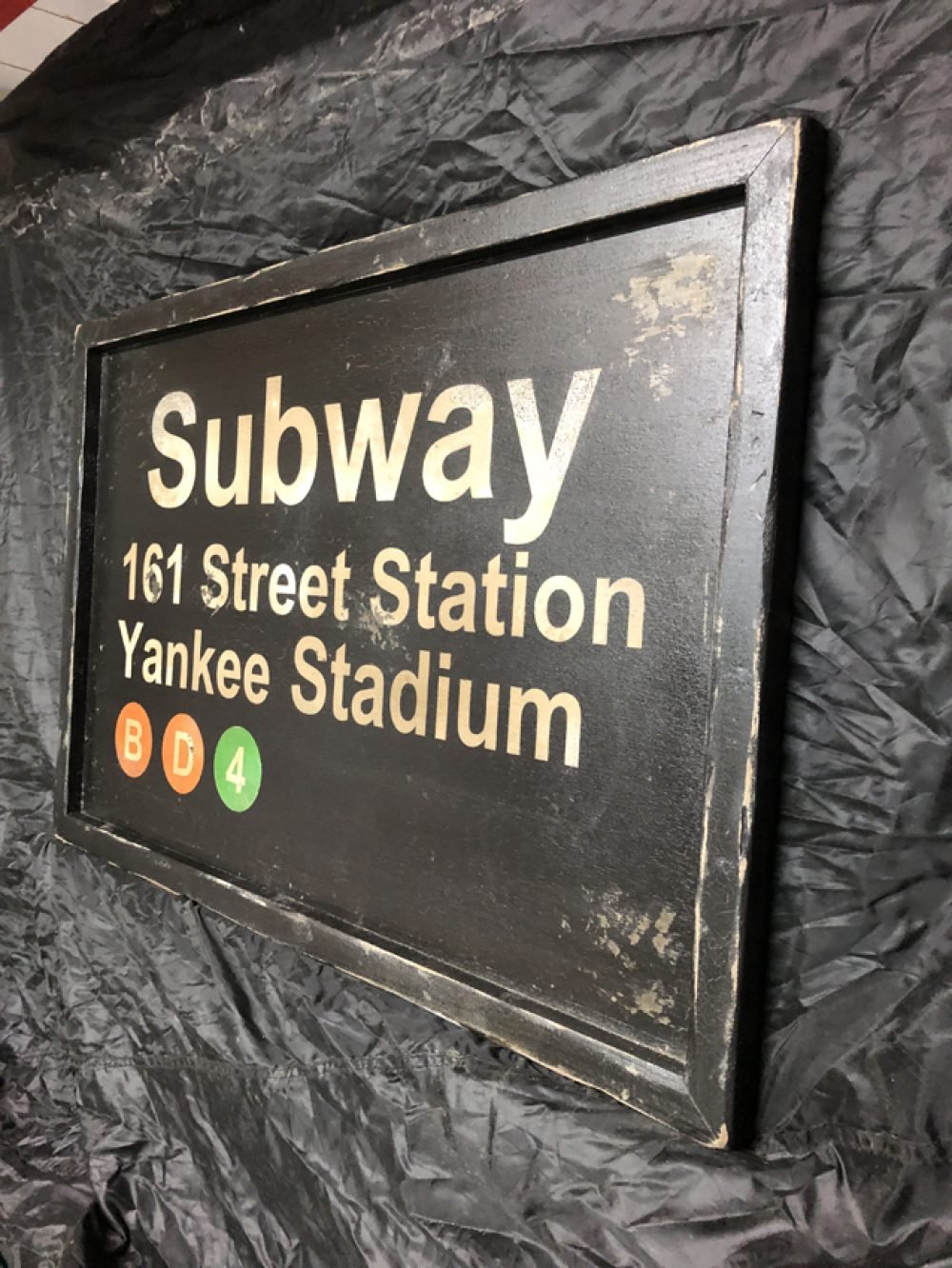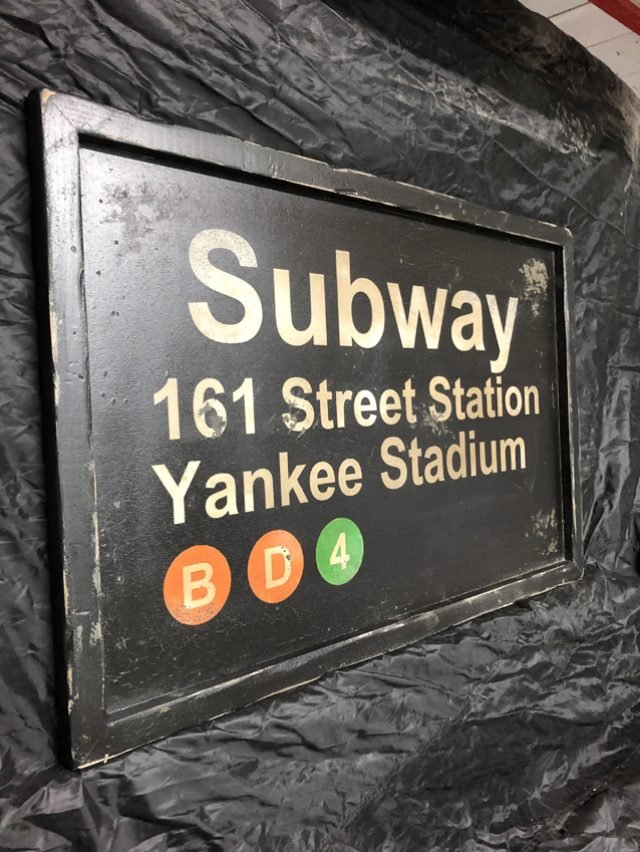 Cartel de Madera, reproduciendo las placas de metro de New york, Subway Yankee Stadium tamaño 100x65cm.