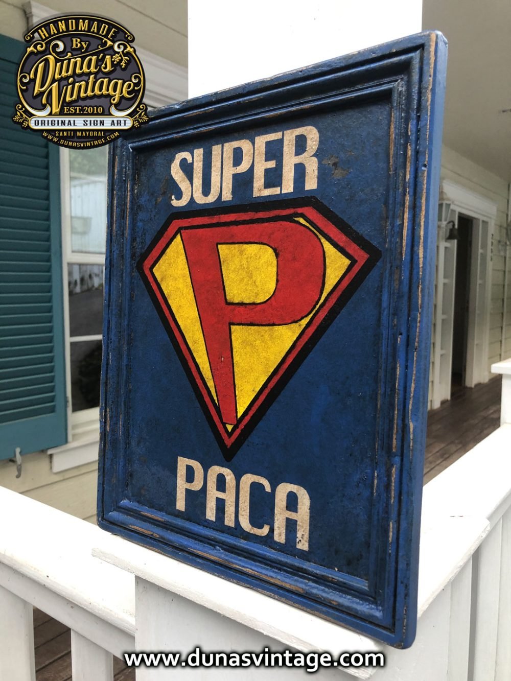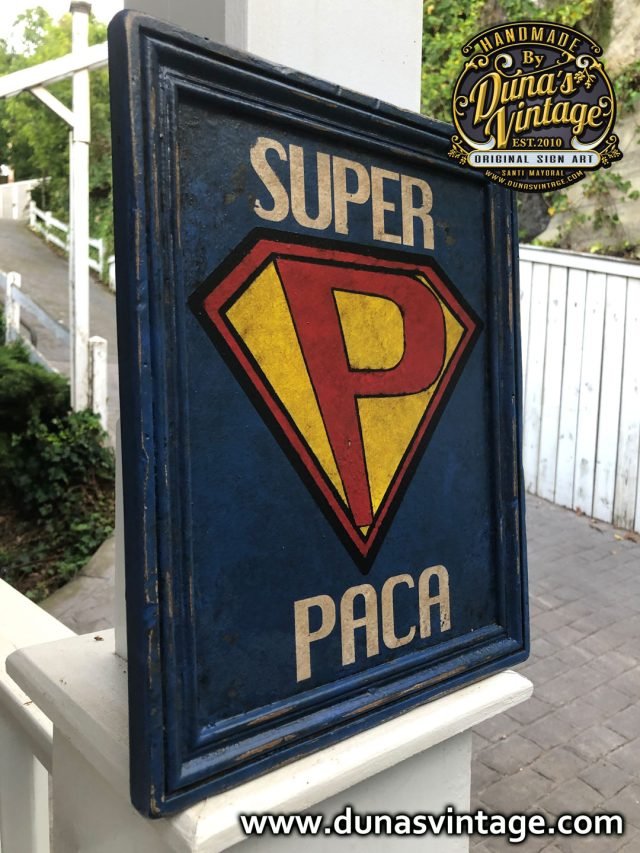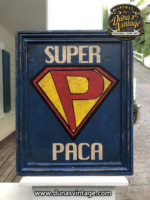 Cartel muy especial que regala Nieta a su Abuela por superar el Covid-19 la Super Heroica SUPER PACA, cartel de madera contra chapado de 18mm acabado vintage tamaño 350x280mm