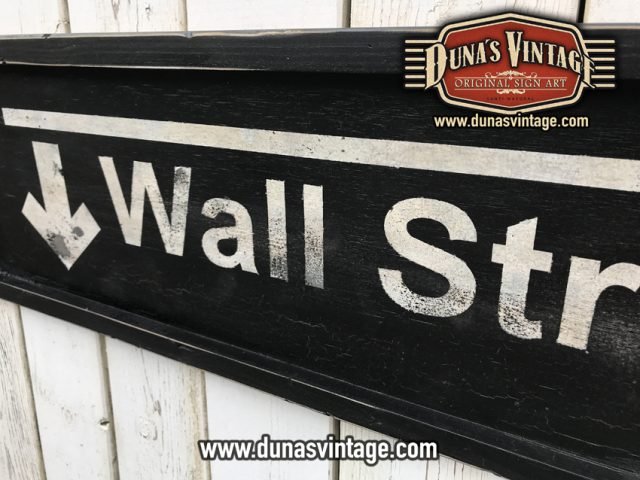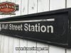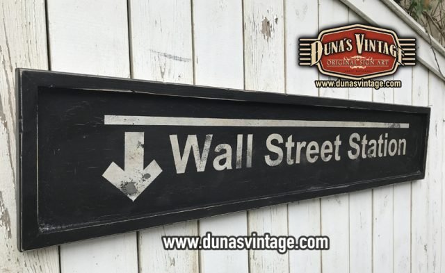 Cartel de Madera WALL STREET STATION tamaño 150x30cm este tipo de señalización la encontramos en las escaleras de metro de New York.