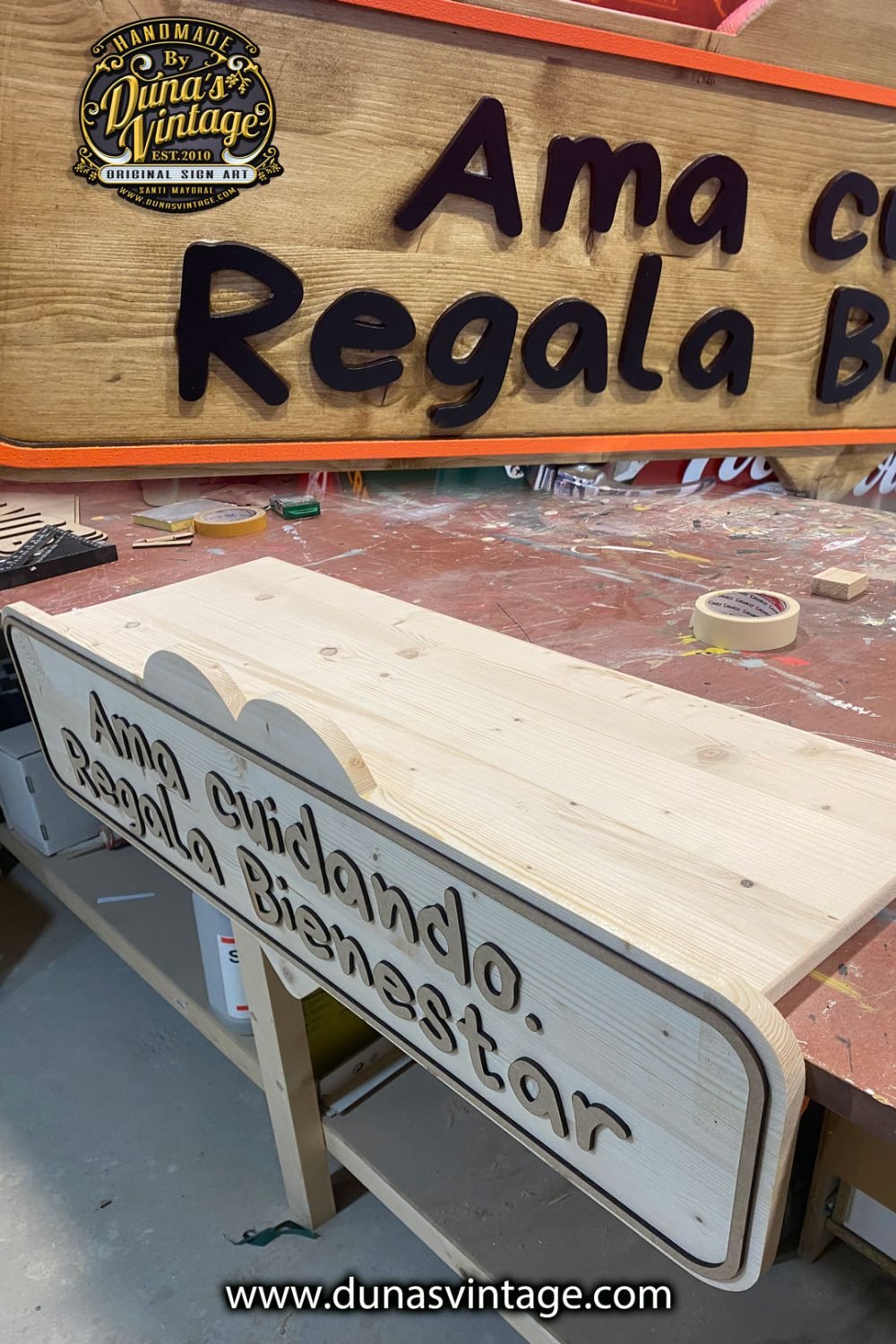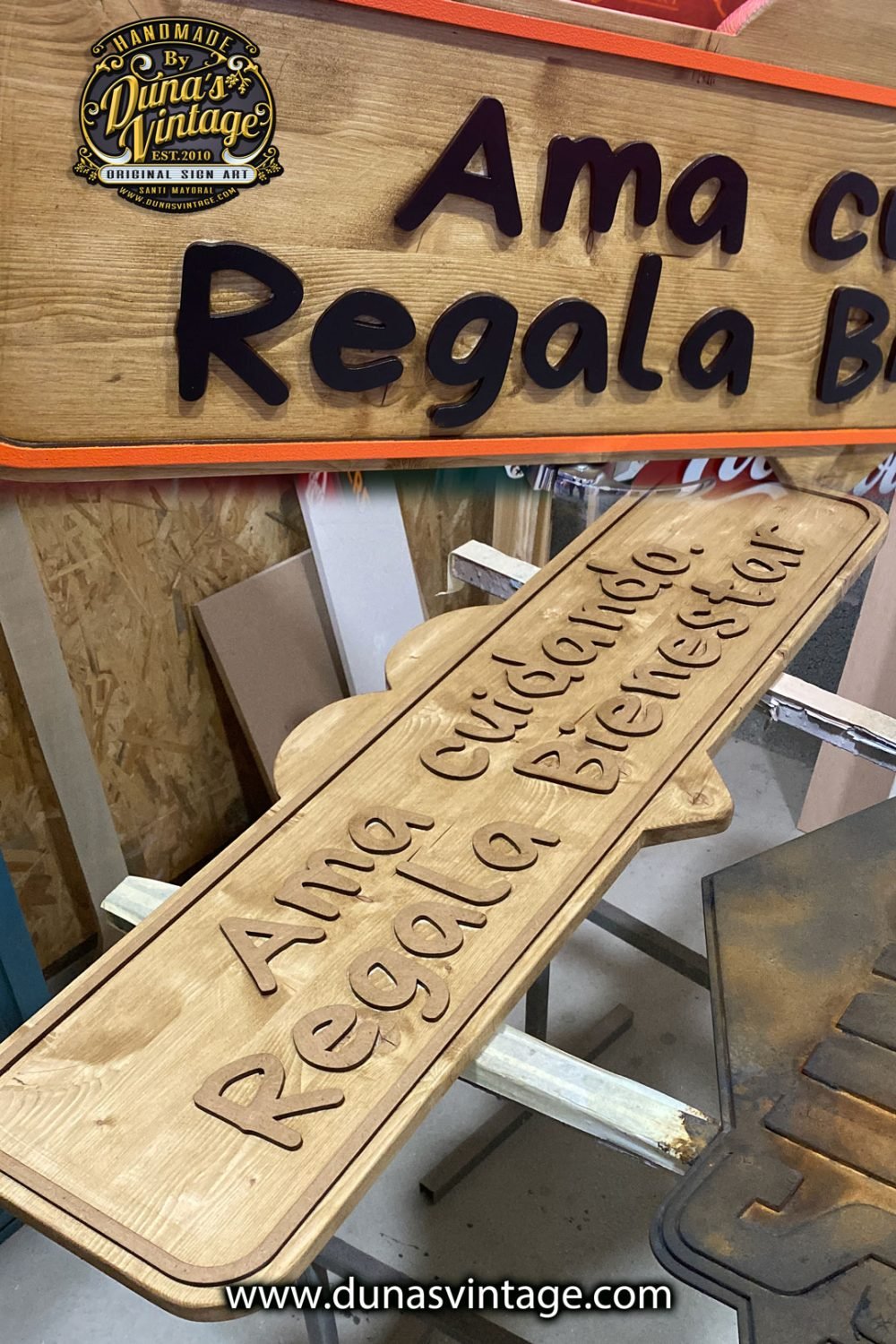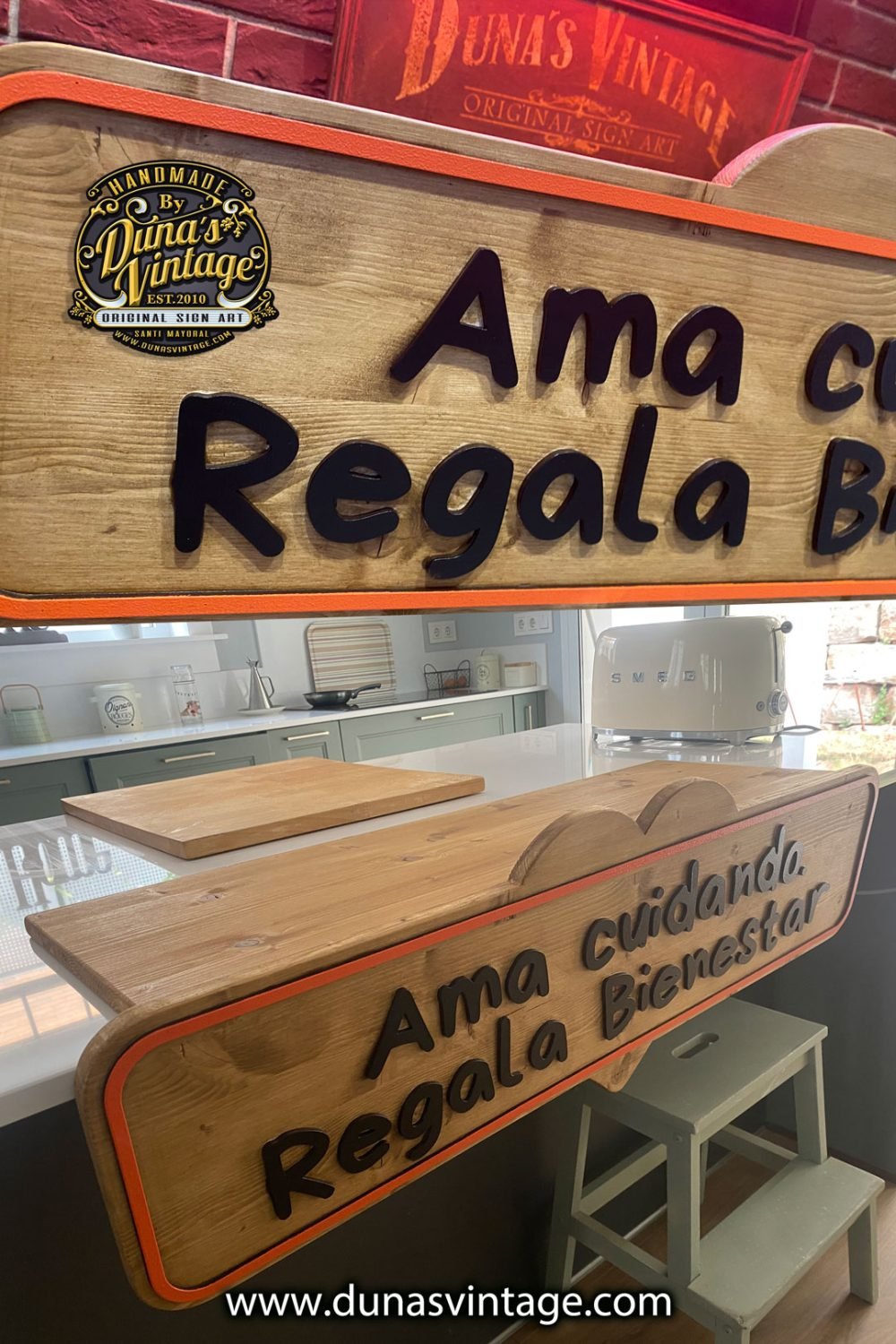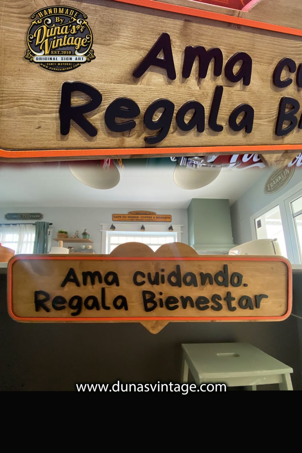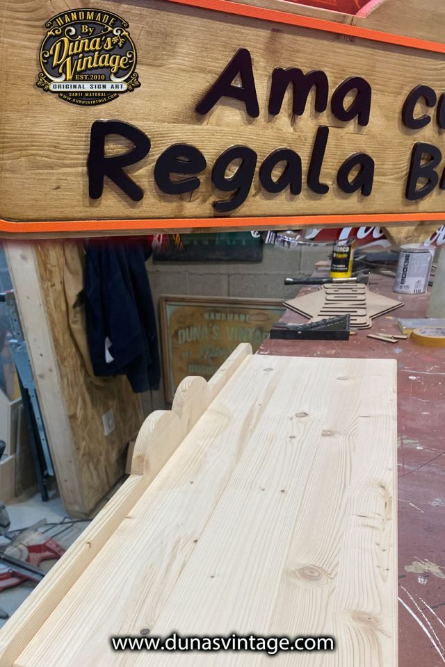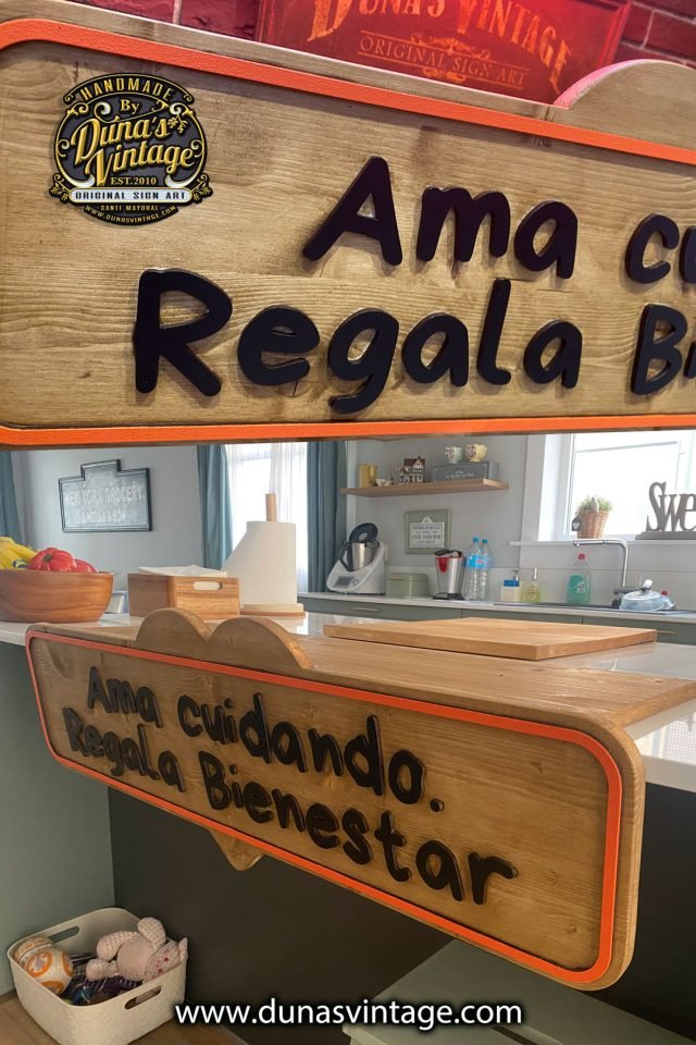 Este cartel de pino con letras en relieve está diseñado para colocarse sobre una mesa. Además de lucir una frase destacada, su parte trasera funciona como expositor, ideal para mostrar productos como jabones. Una pieza funcional y decorativa con el estilo único de Duna’s Vintage. ¿Tenés otra idea? En Duna’s Vintage lo hacemos realidad.