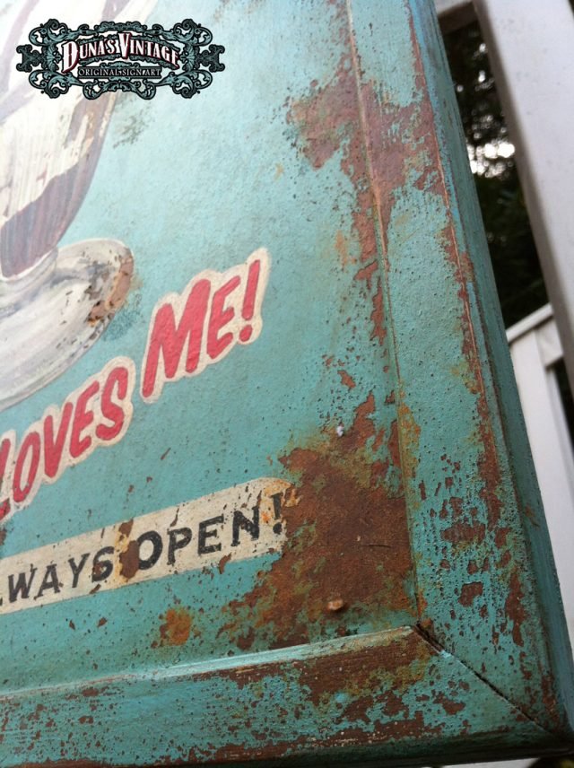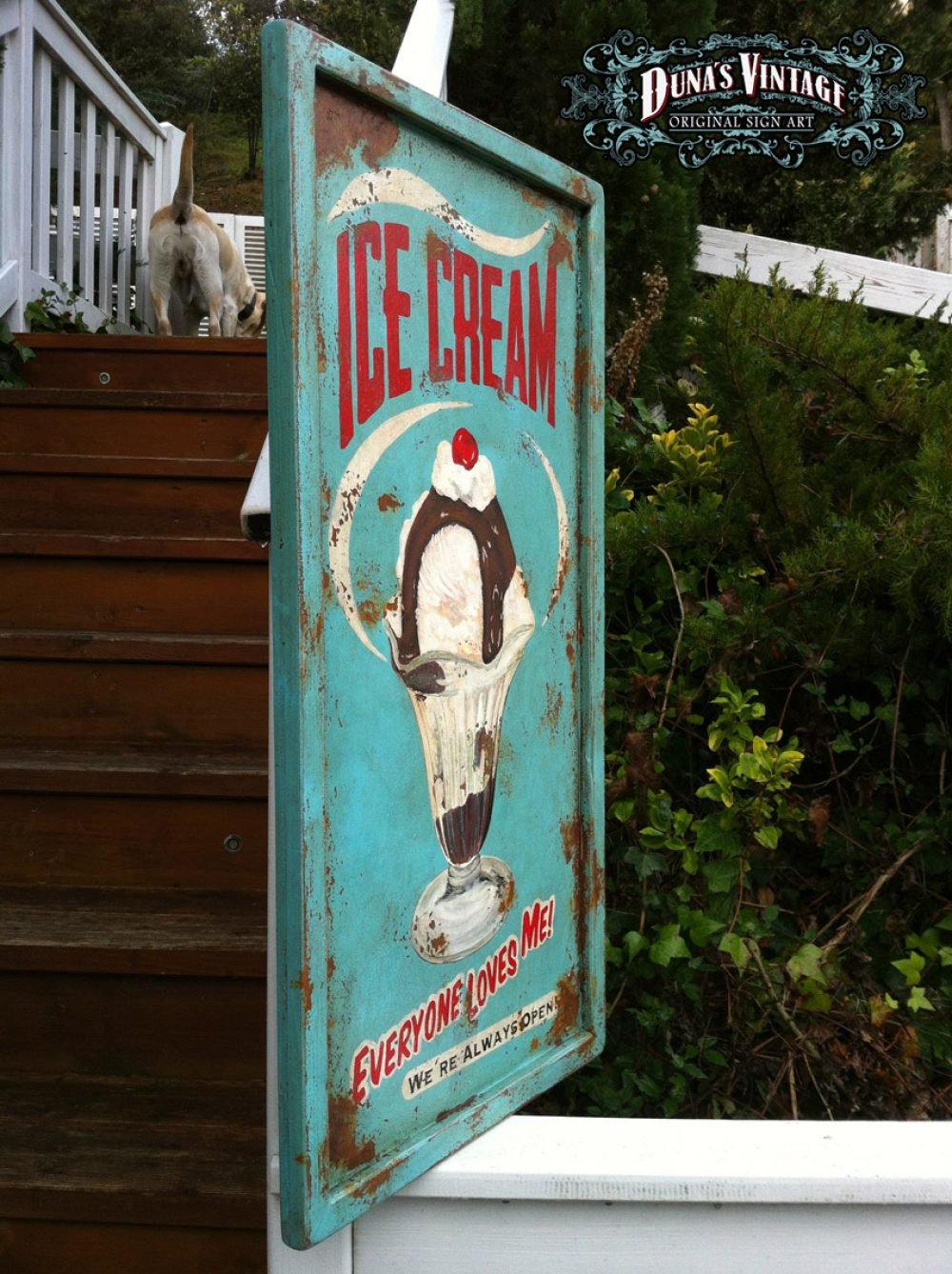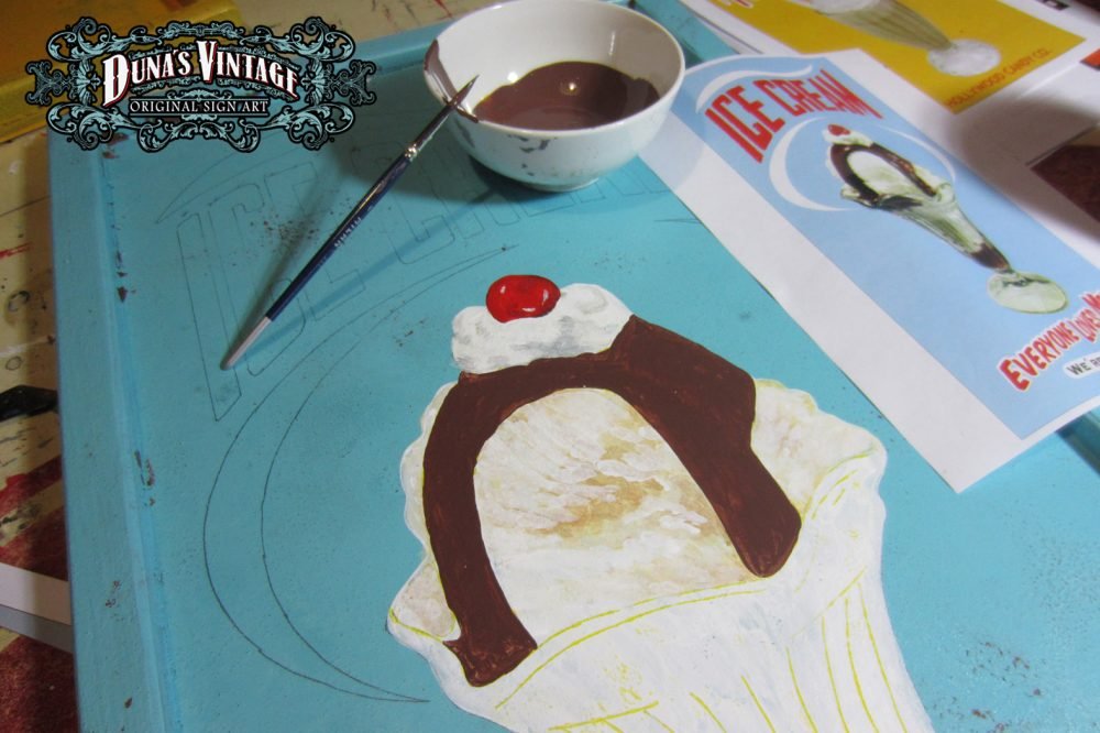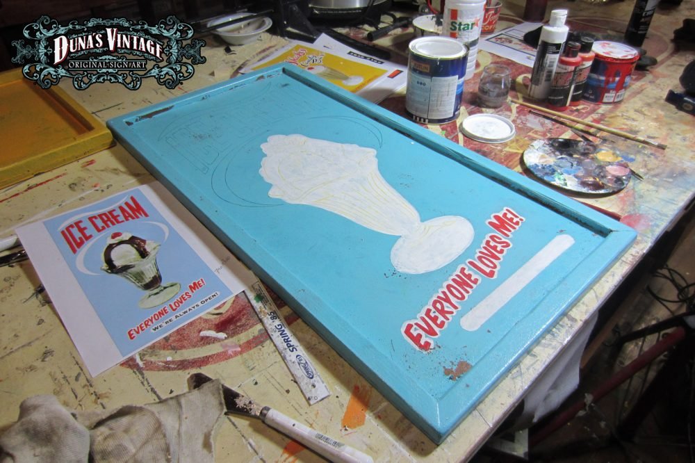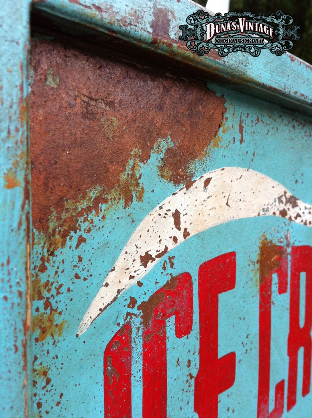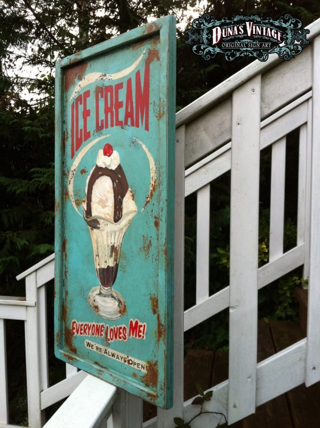 Cartel «ICE CREAM» tamaño 800x415mm. Este cartel esta tratado con el efecto Retro que Duna´s Vintage emplea en sus carteles pintados a mano.