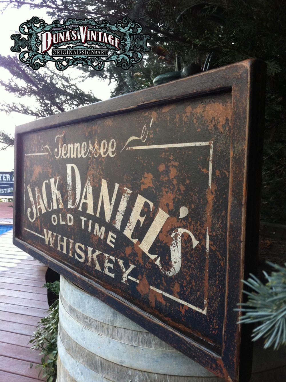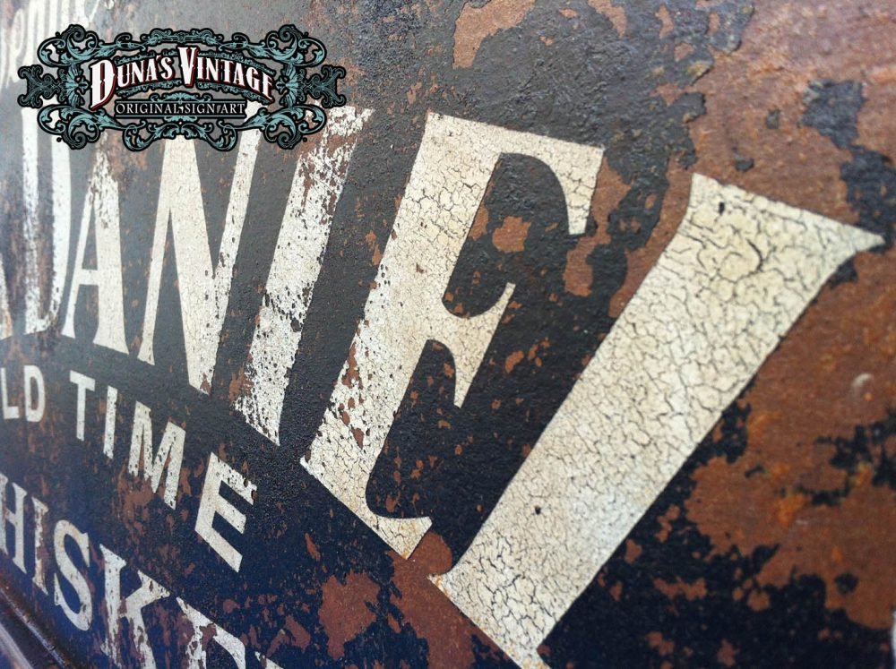 Cartel «Jack Daniel´s» tamaño 850x350mm. Este cartel esta tratado con el efecto Retro que Duna´s Vintage emplea en sus carteles pintados a mano.