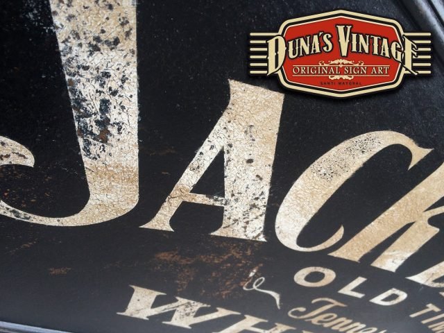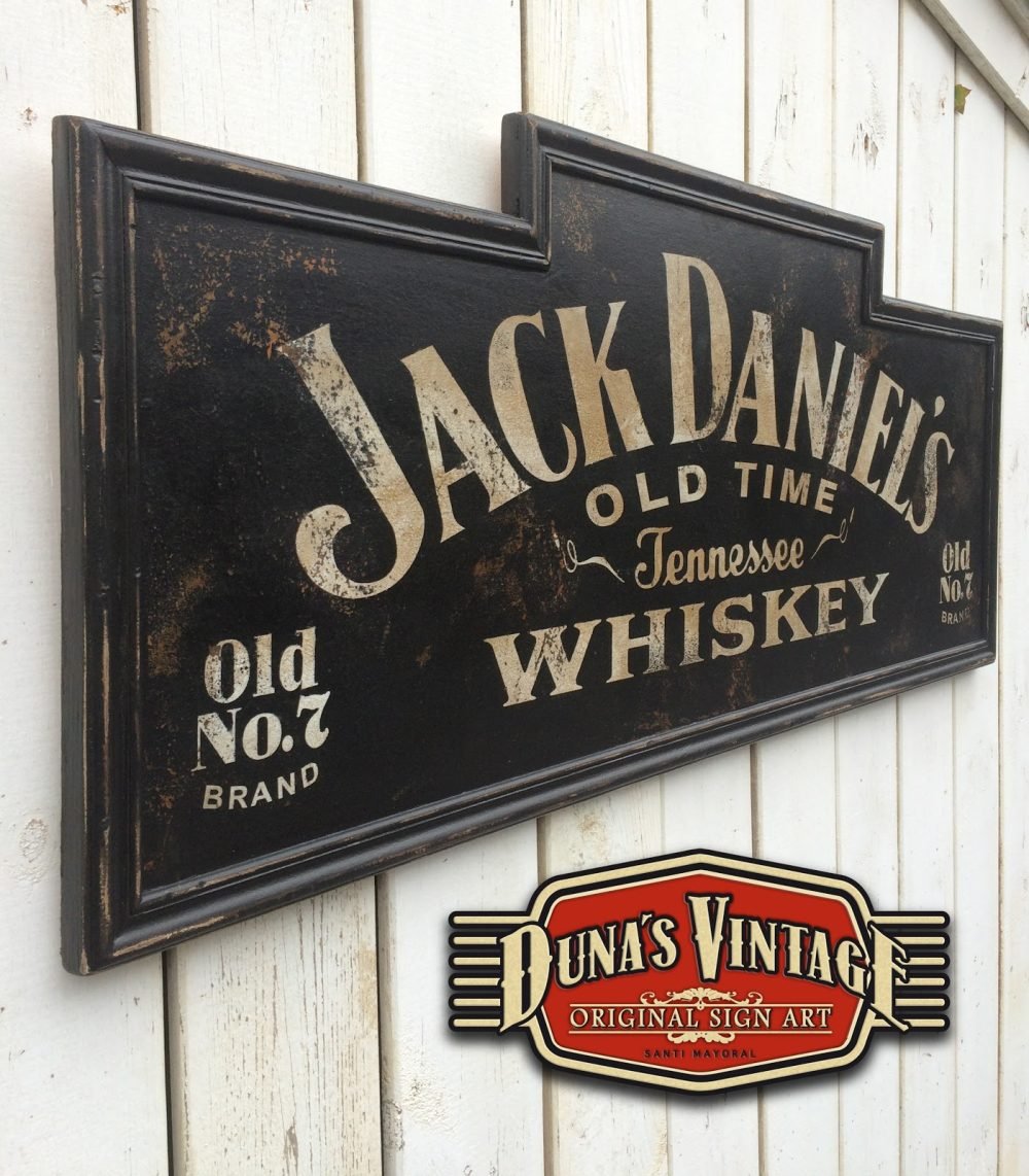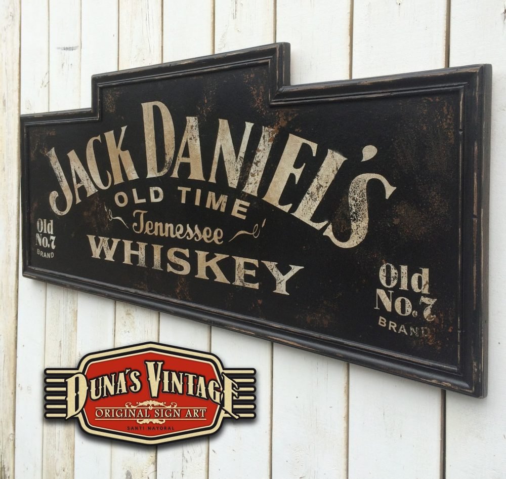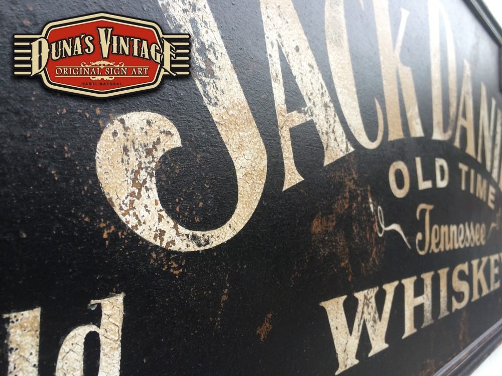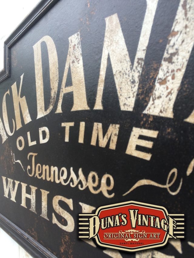 Cartel de madera pintado a mano de Jack Daniel´s, tamaño 1220x500mm.