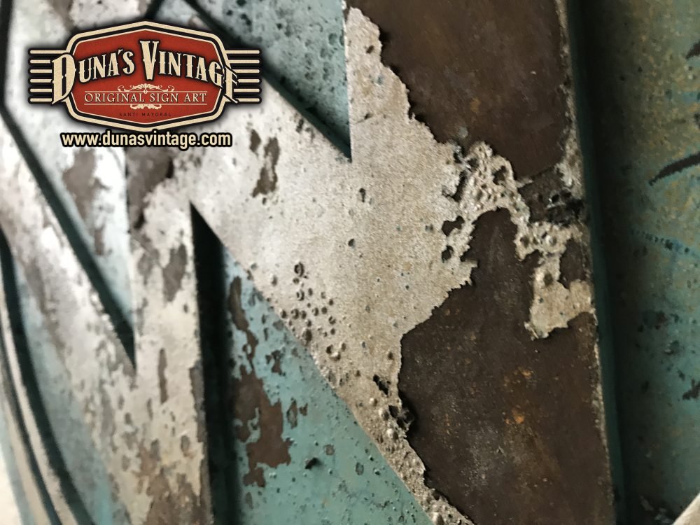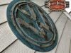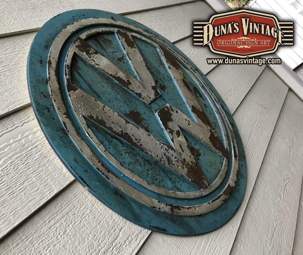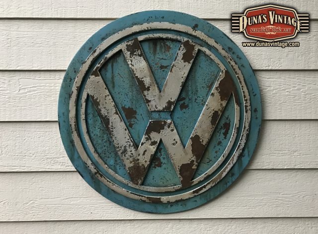 Cartel de madera en relieve efecto metal y oxidado, logotipo de Volkswagen tamaño 82cm de diametro.
