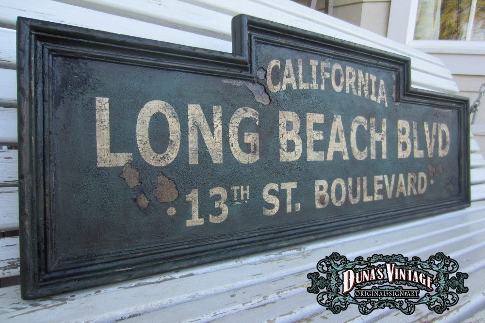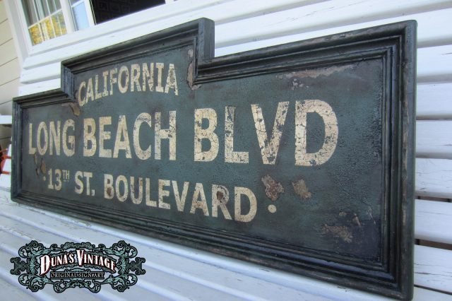 Cartel de Madera «LONG BEACH BLVD CALIFORNIA» tamaño 350X1000mm, este cartel esta tratado con el efecto Retro que Duna´s Vintage emplea en sus carteles