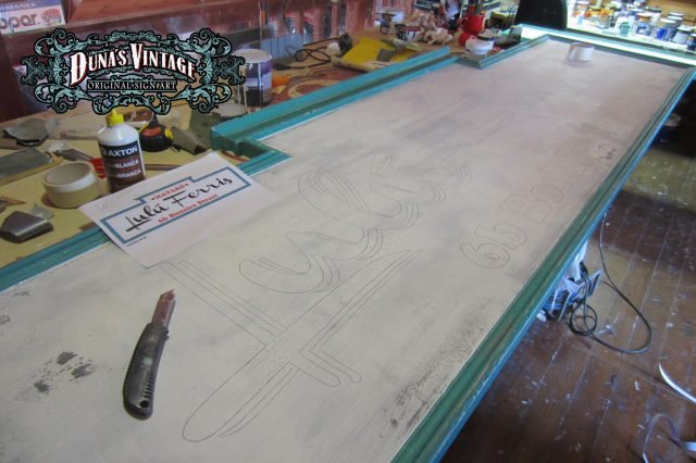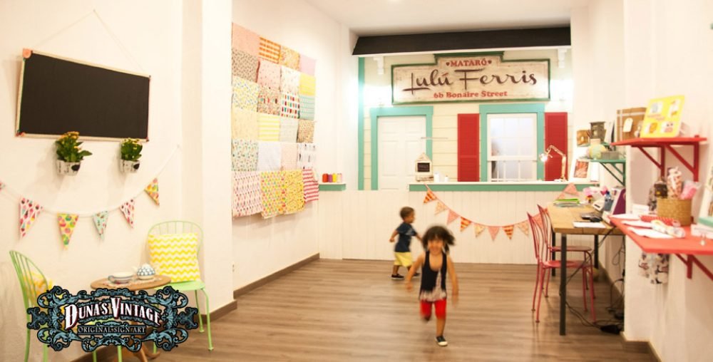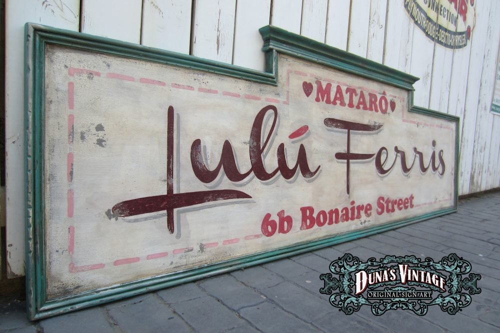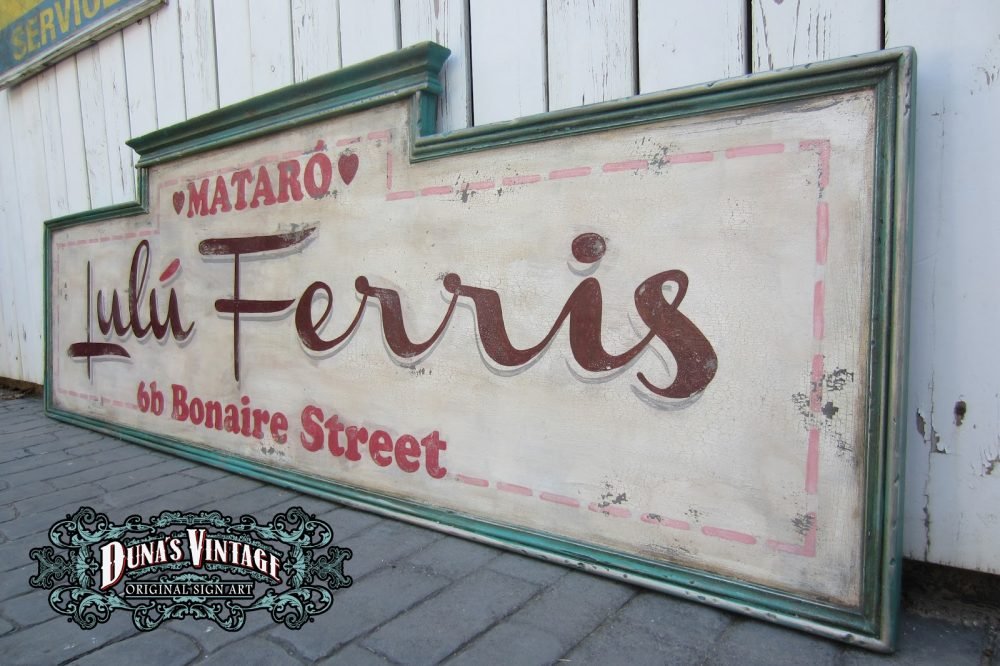 Cartel de Madera «Lulu ferris» tamaño 2500x800mm. Este cartel esta tratado con el efecto Retro que Duna´s Vintage emplea en sus carteles.