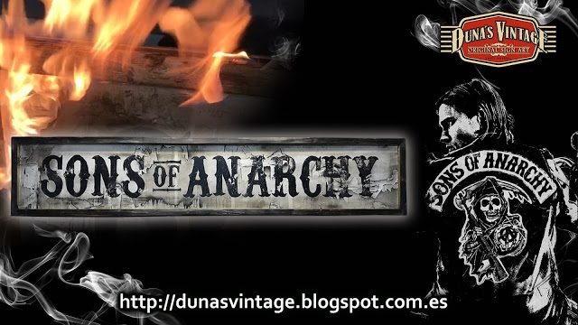 Réplica del cartel de SONS OF ANARCHY tamaño 2000x400mm, este cartel se a trabajado mucho el efecto deteriorado para llegar a este efecto se a tenido que chumascar un poco el cartel solo un poco!!!, Duna´s Vintage.