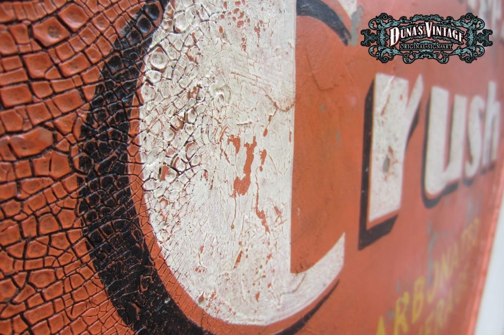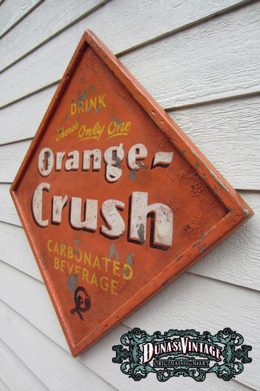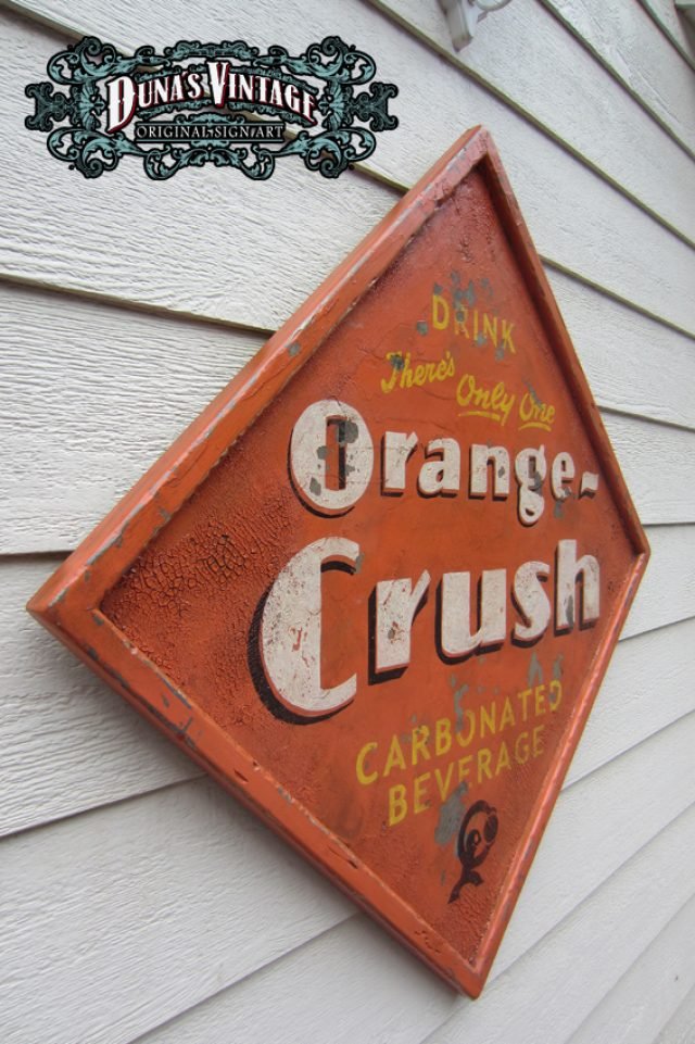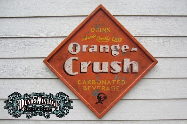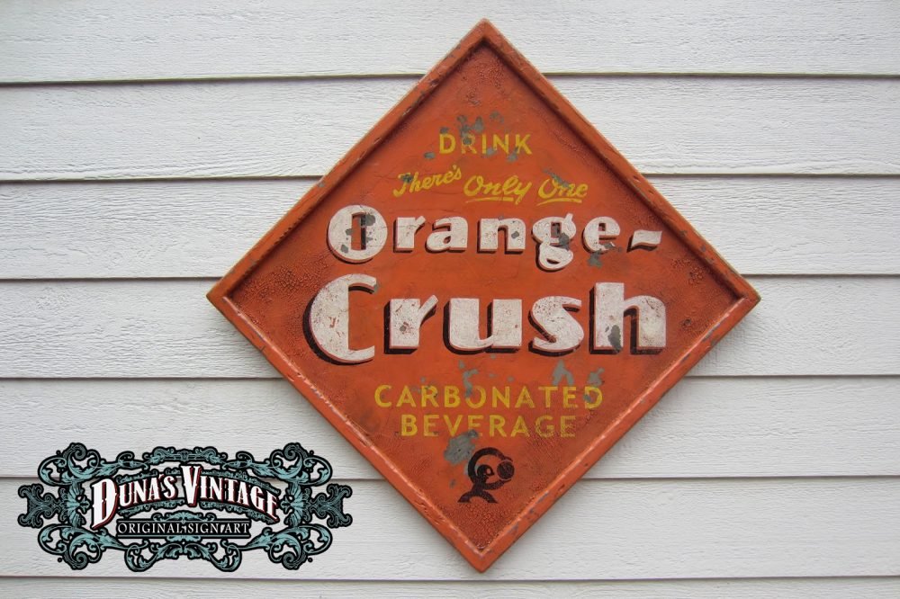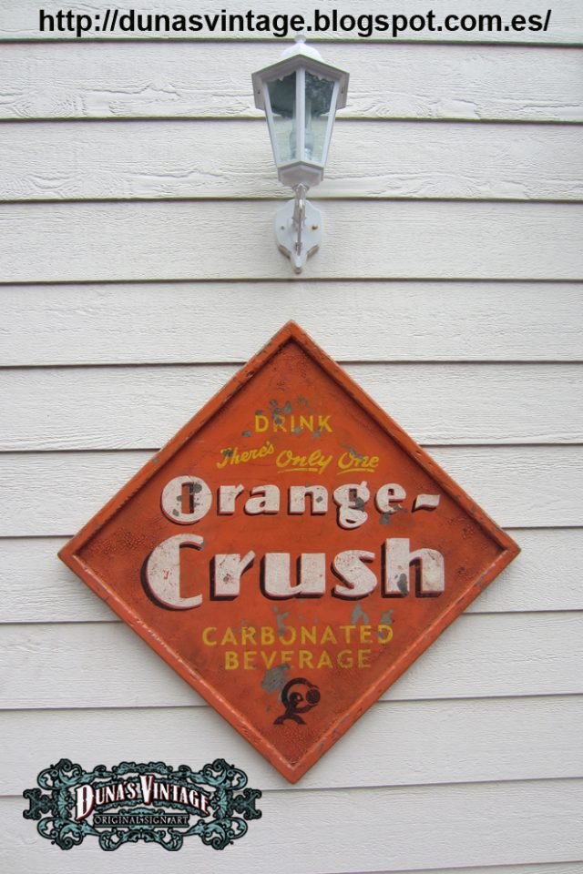 Cartel de Madera «Orange-Crush» tamaño 750x750mm. Este cartel esta tratado con el efecto Retro que Duna´s Vintage emplea en sus carteles.