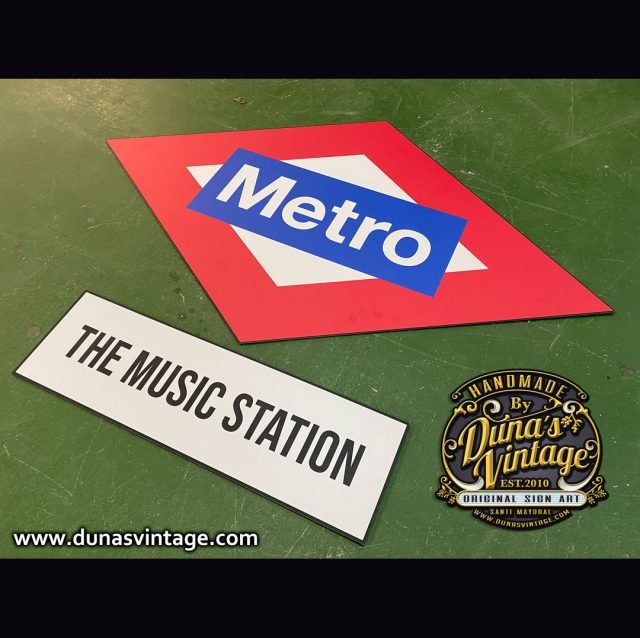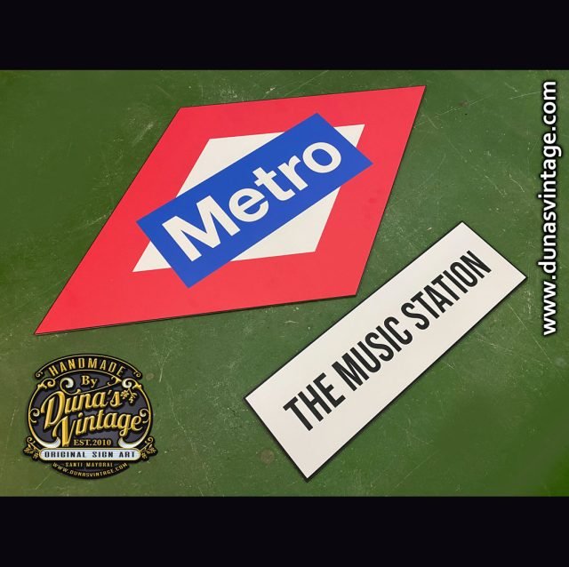 Esta esta la típica placa de metro fabricado en aluminio tamaño 900x540mm y The Music Station de 500x150mm, es una réplica lo más exacta de lo que fue uno de los carteles de la estación Norte de Madrid, Príncipe Pio en ella se albergará la sede de un gran “hub” creativo-musical de Warner Music, la idea ha sido replicar todos los carteles que se encontraban antiguamente en esta emblemática estación de Madrid, se ha buscado hasta el último detalle para que quede lo más auténtico posible, iré subiendo todos los carteles que hay unos cuantos repartido por toda la estación.