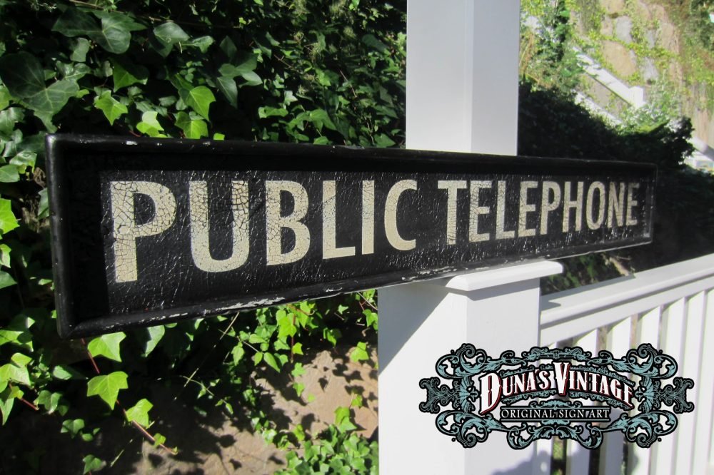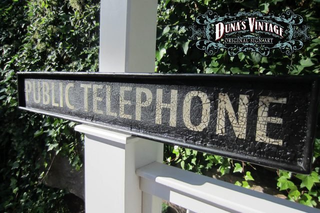Cartel «PUBLIC TELEPHONE.» tamaño 1220x200mm. Este cartel esta tratado con el efecto Retro que Duna´s Vintage emplea en sus carteles.