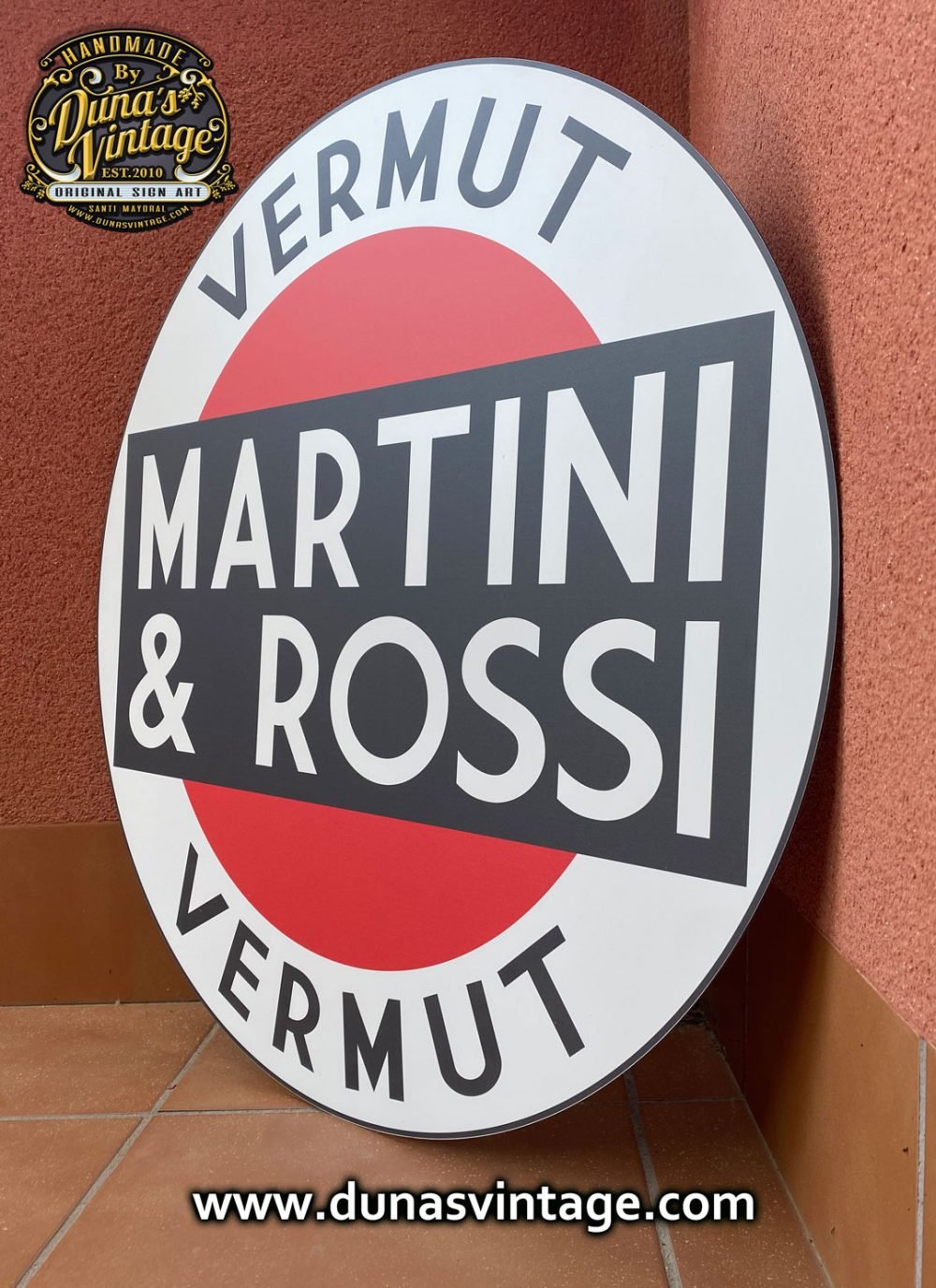 Este cartel de Martini & Rossi fabricado en aluminio con un diámetro de 700mm, es una réplica lo más exacta de lo que fue uno de los carteles de la estación Norte de Madrid, Príncipe Pio en ella se albergará la sede de un gran “hub” creativo-musical de Warner Music, la idea ha sido replicar todos los carteles que se encontraban antiguamente en esta emblemática estación de Madrid, se ha buscado hasta el último detalle para que quede lo más auténtico posible, iré subiendo todos los carteles que hay unos cuantos repartido por toda la estación.